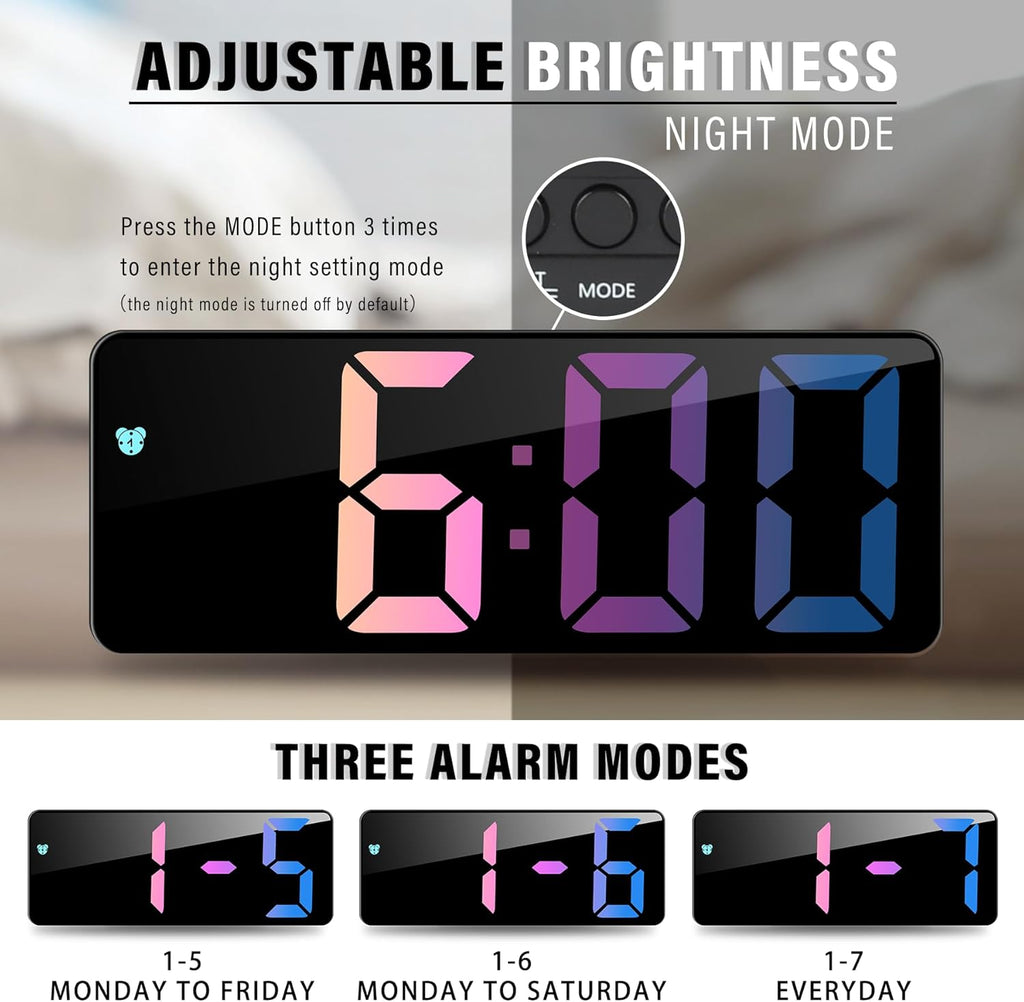Clear LED Display: Large, easy-to-read digits for time, date, and temperature.