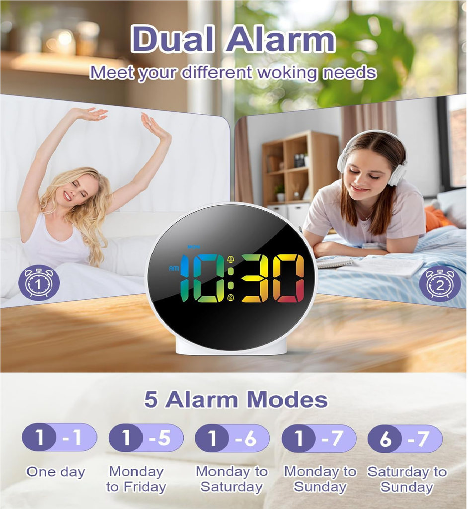 Wake up in style with the Newest Digital Alarm Clock, featuring a colorful curved LED display that blends beauty and functionality. Its vibrant screen offers a clear time view from any angle, while the 4-level adjustable brightness ensures perfect visibility both day and night.