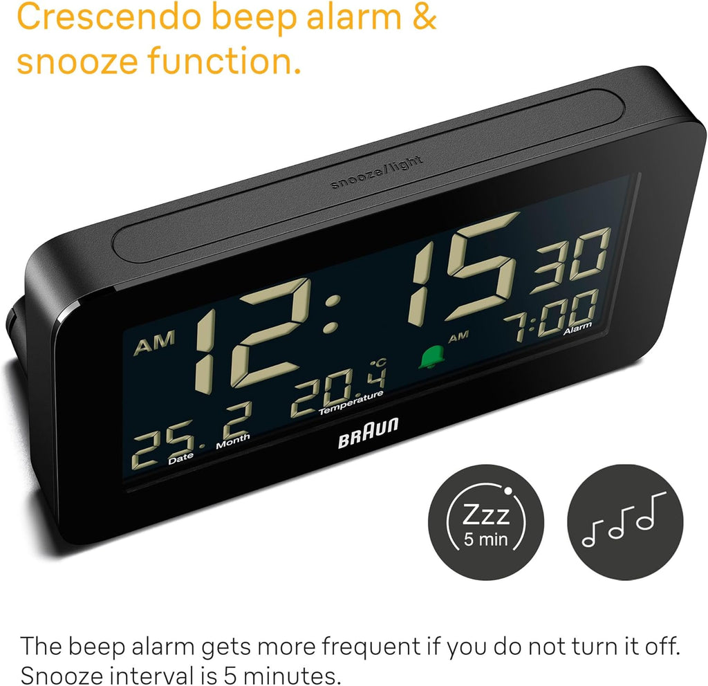 Crescendo Beep Alarm: Gradually increases volume for a gentle wake-up.