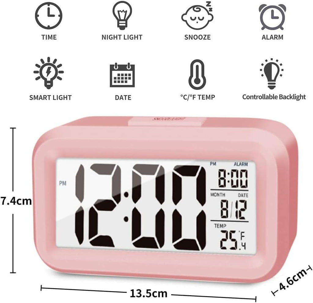 Night Light Digital Alarm Clock – 4.5" Large Display, Temperature, Snooze, Battery Powered