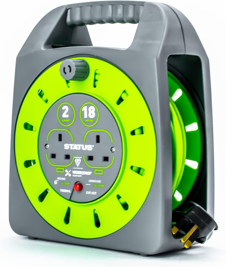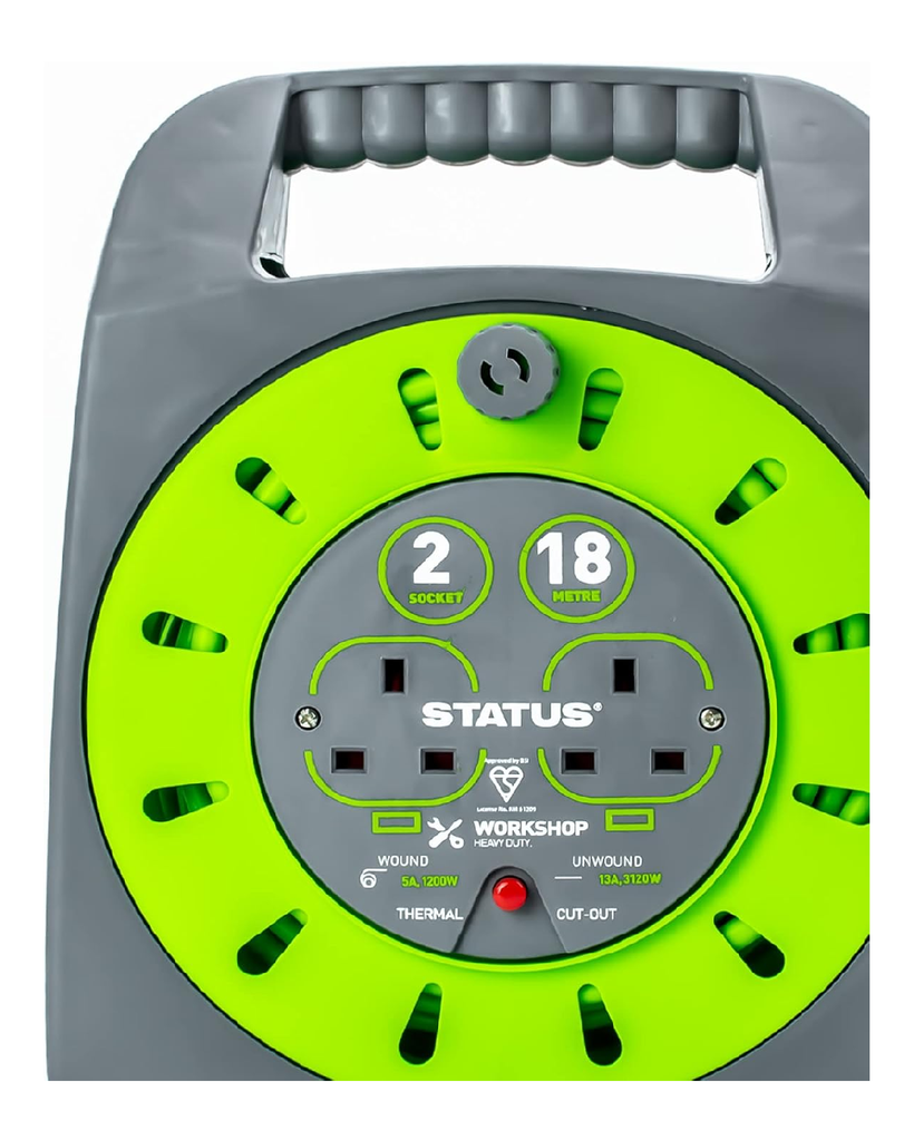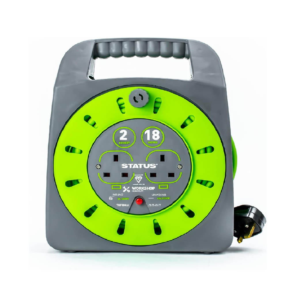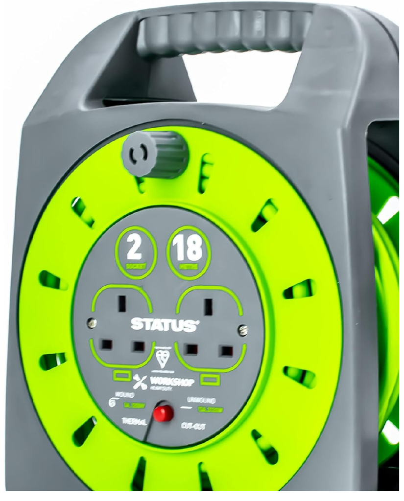 Power your garden tools, workshop equipment, and DIY projects safely with this 18-metre 2-Socket Cable Reel. Designed for both indoor and outdoor use, it offers a long reach for powering lawnmowers, pressure washers, and other electrical devices. The 13A heavy-duty rating ensures reliable performance, while the built-in thermal cut-out system provides protection from overheating and overloading. Its durable, high-visibility green cable reduces trip hazards and keeps the cord easy to spot. The ergonomic reel handle allows for smooth winding and convenient storage, making it the perfect solution for home, garden, or jobsite power needs.