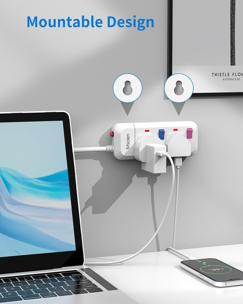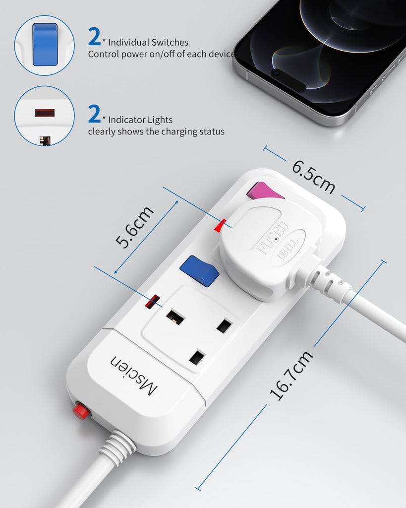 This extension lead features built-in overload protection to safeguard your devices against power surges, overcurrent, and short circuits. Its 1.5-meter cable offers flexibility in positioning, and the wall-mountable design ensures a neat and organized setup, ideal for desktops, kitchens, bedrooms, or office desks.