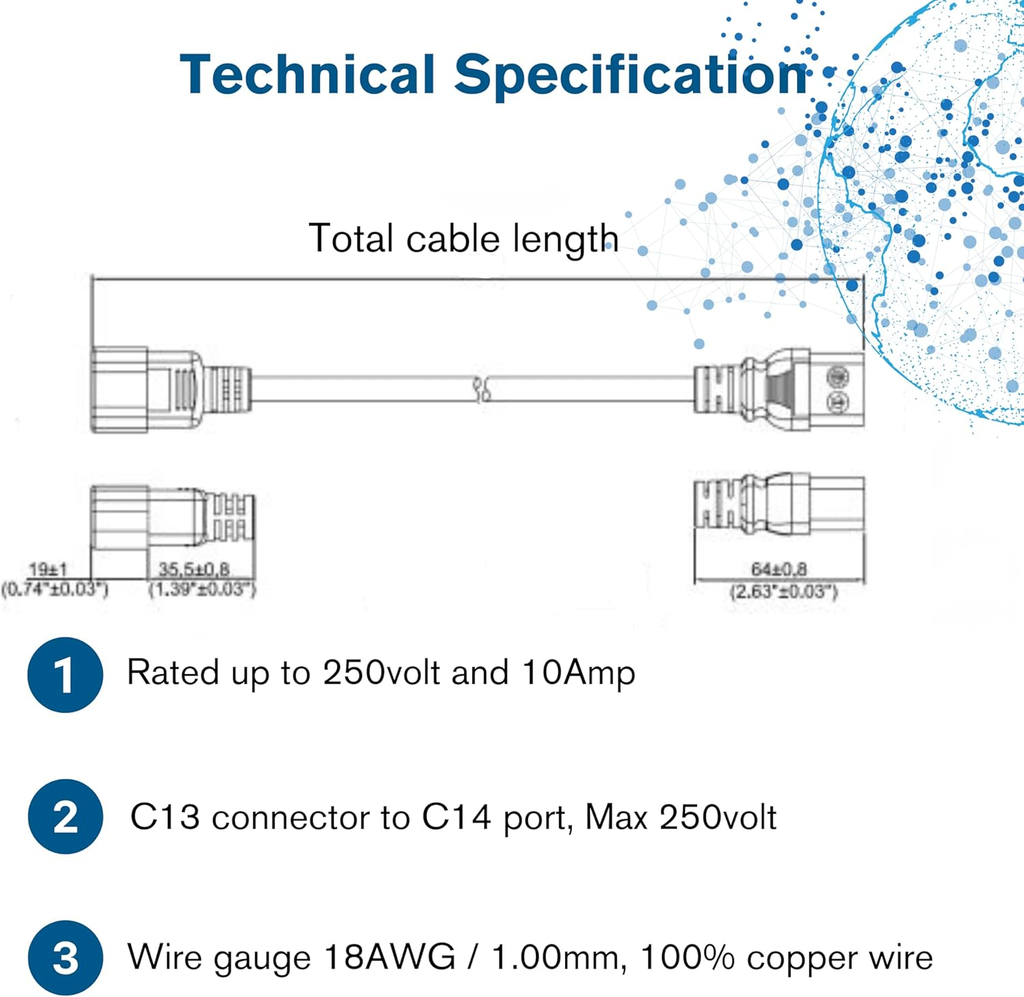 Type: IEC320 C13 to IEC320 C14 Power Extension Cable