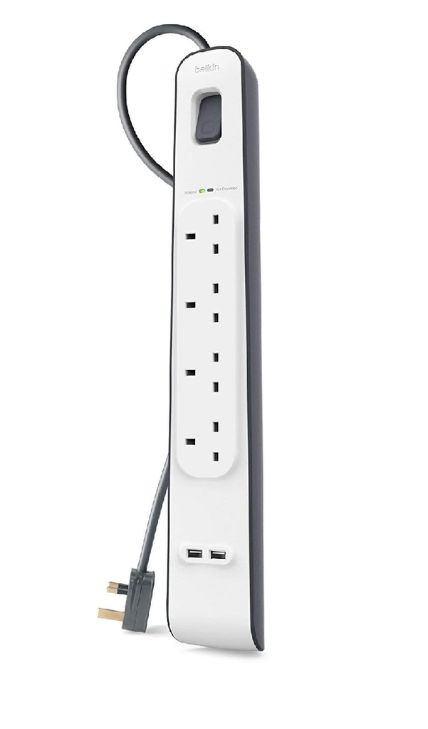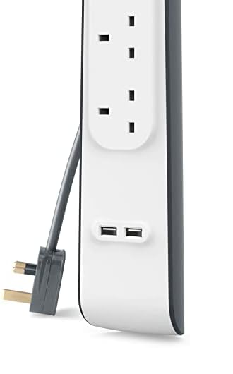 Power multiple devices safely and conveniently with this 4-Way Extension Lead featuring dual USB charging ports. Designed with built-in surge protection, it keeps your electronics safe from power spikes and voltage fluctuations. The two USB slots (2.4A shared) allow you to charge smartphones, tablets, and other USB gadgets without needing extra adapters. Its 2-metre cable gives you flexible placement around your home, office, or workspace. Compact, durable, and efficient – this white power strip is a must-have for organised and safe power management.