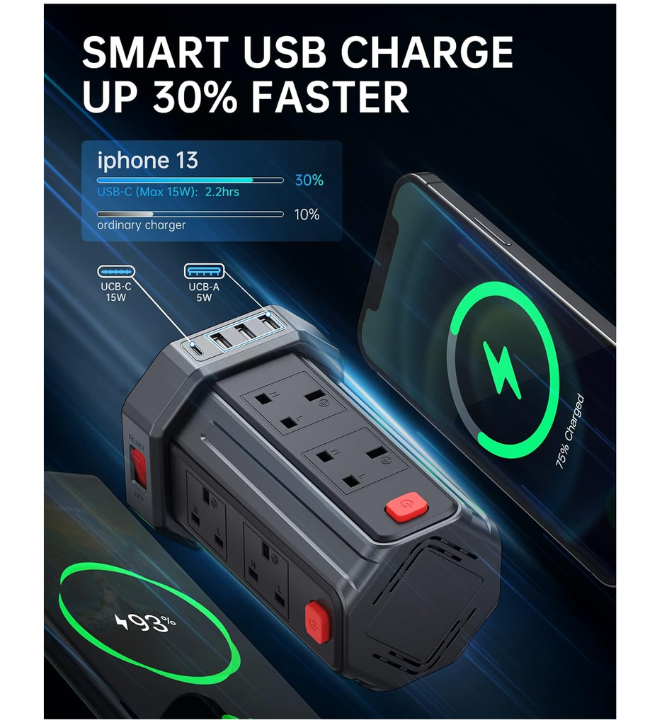 The fire-retardant ABS shell ensures long-lasting durability and safety, making it the perfect all-in-one charging and power solution for busy households, offices, or shared workspaces.
