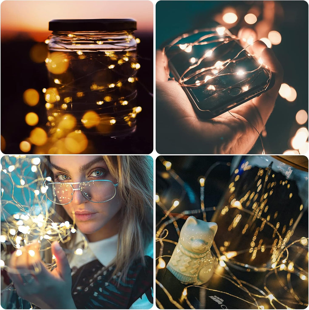 Create a magical atmosphere anywhere with this 10 Pack of LED Fairy String Lights. Each 3-meter copper wire strand features 30 warm white micro LEDs and offers 3 lighting modes to suit any mood. Battery operated and lightweight, these waterproof lights are perfect for holiday decorations, weddings, parties, bottle decor, and more.