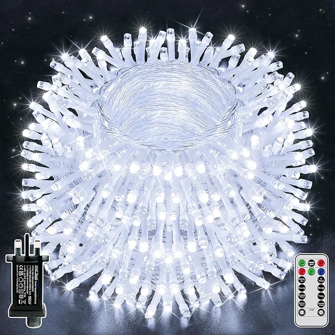 Create an enchanting glow indoors or outdoors with these 40M mains-powered fairy lights. Featuring 400 warm white LEDs on clear wire, they’re perfect for decorating trees, windows, walls, and gardens. With 8 lighting modes, a timer function, dimmable brightness, and IP44 waterproof protection, they offer a safe and beautiful lighting solution for any event or season.