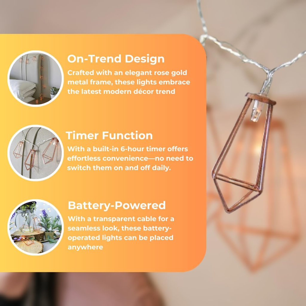 Rose Gold Geometric Design – Modern lantern-style string lights