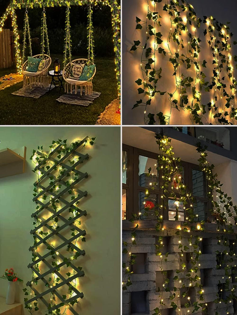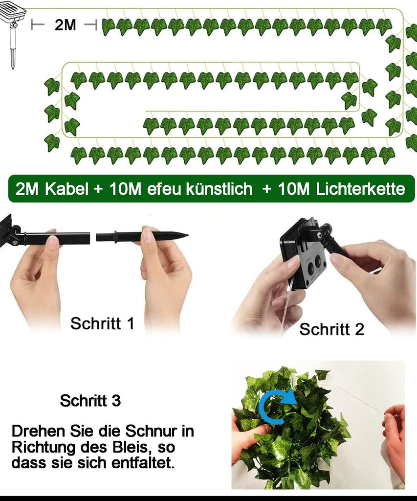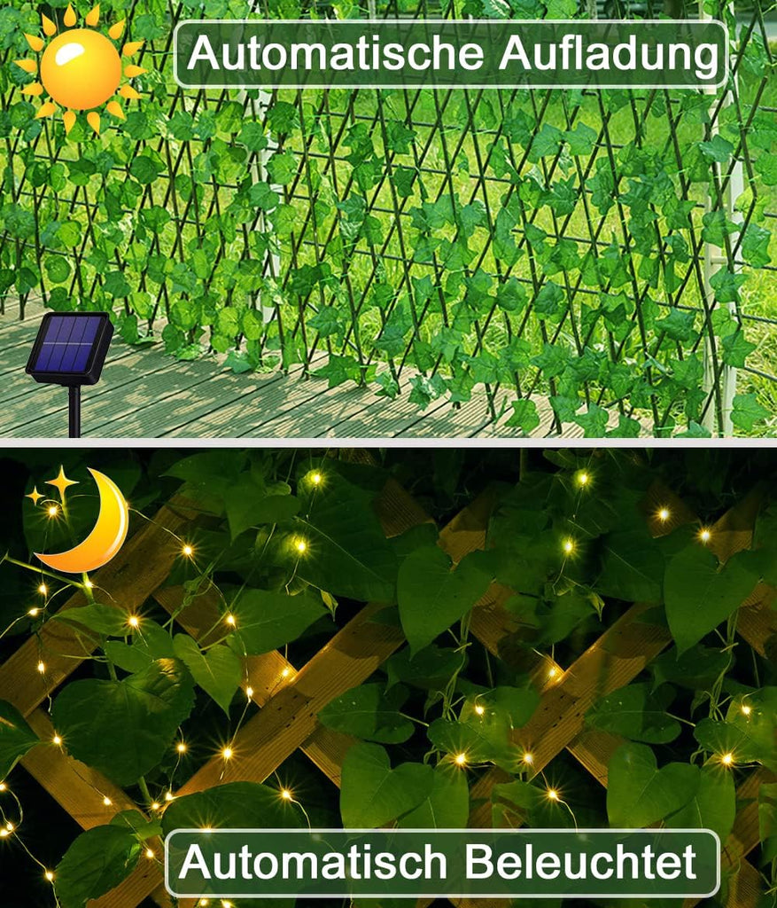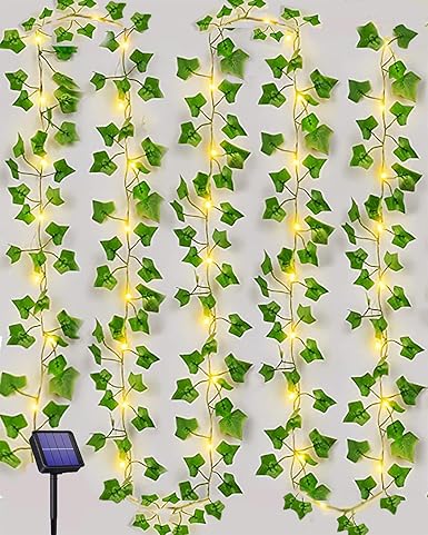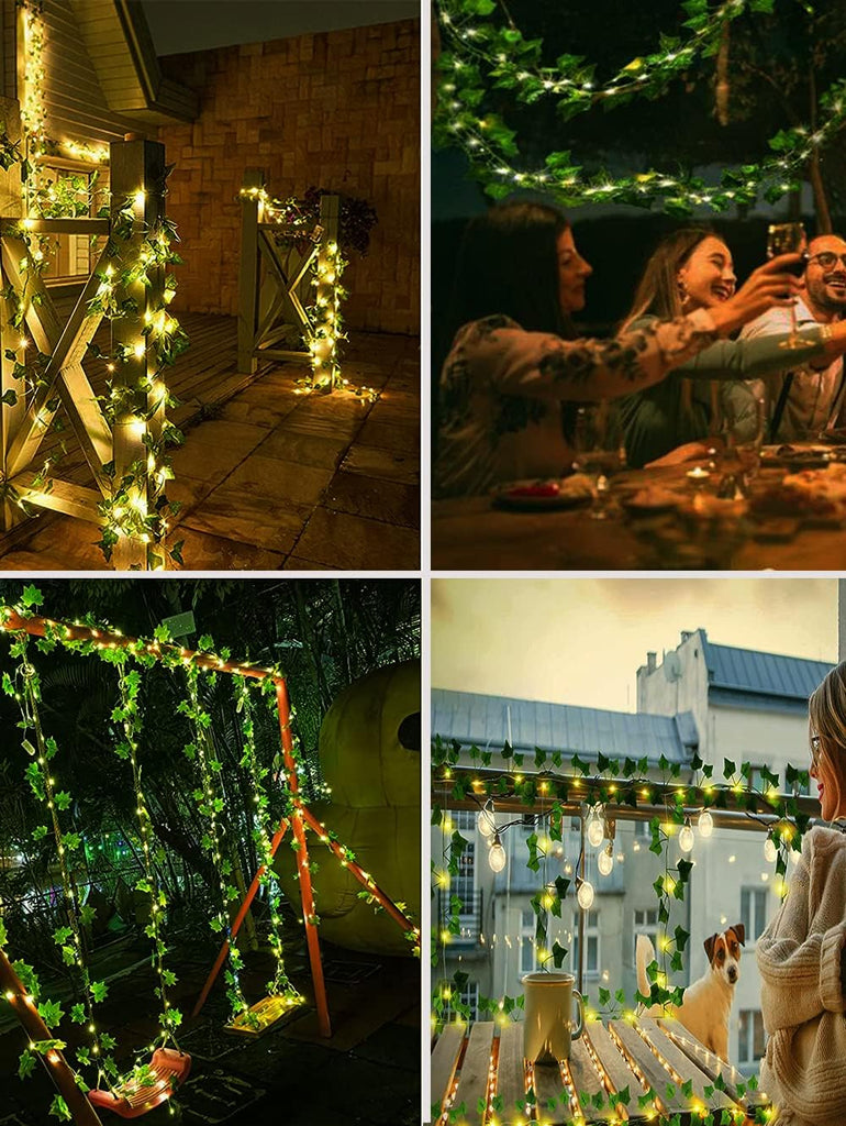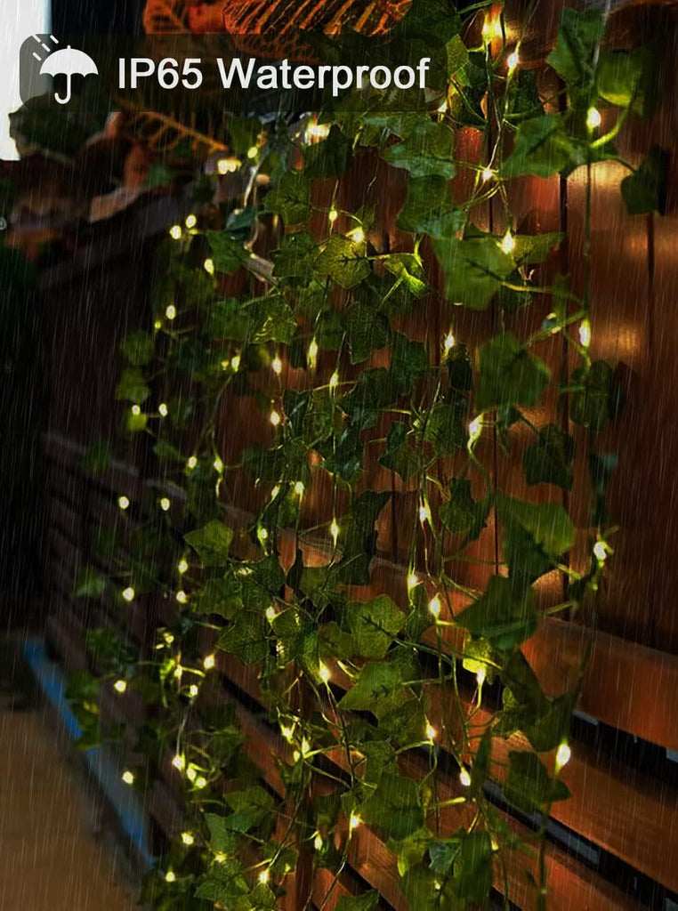 Transform your garden, bedroom, or event space into a magical forest with our 10-meter Solar String Lights featuring 100 LED fairy lights woven into artificial ivy vines. This enchanting decoration is solar powered, easy to install with no wiring hassle, and perfect for adding a warm, cozy atmosphere to any setting. The transparent cable blends seamlessly with the green ivy, creating a natural look that lights up automatically at dusk.