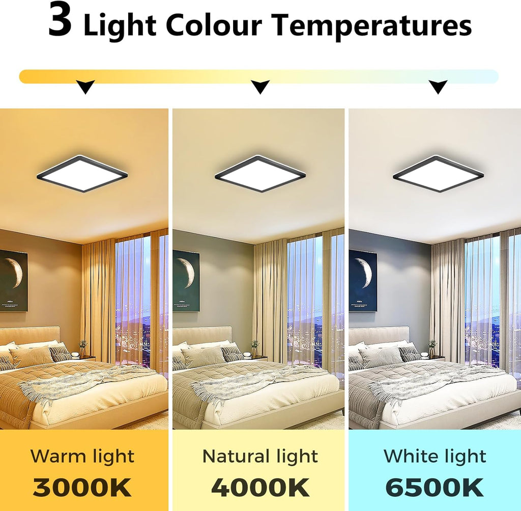 This LED ceiling light is not only practical but also stylish, making it a versatile choice for modern homes. The black square design adds a contemporary touch, while the adjustable color temperature ensures you always have the right light—whether you want a warm cozy glow in your bedroom or bright, clear lighting in your bathroom or kitchen.