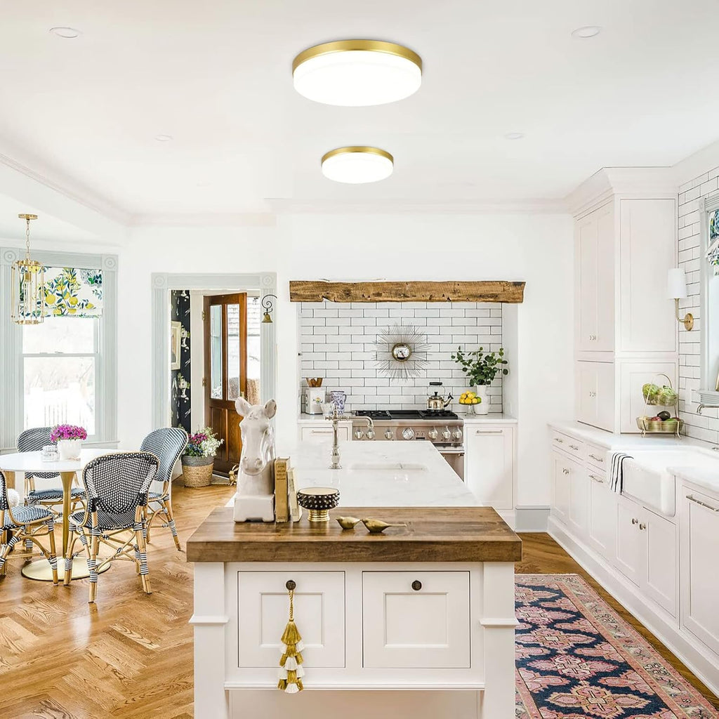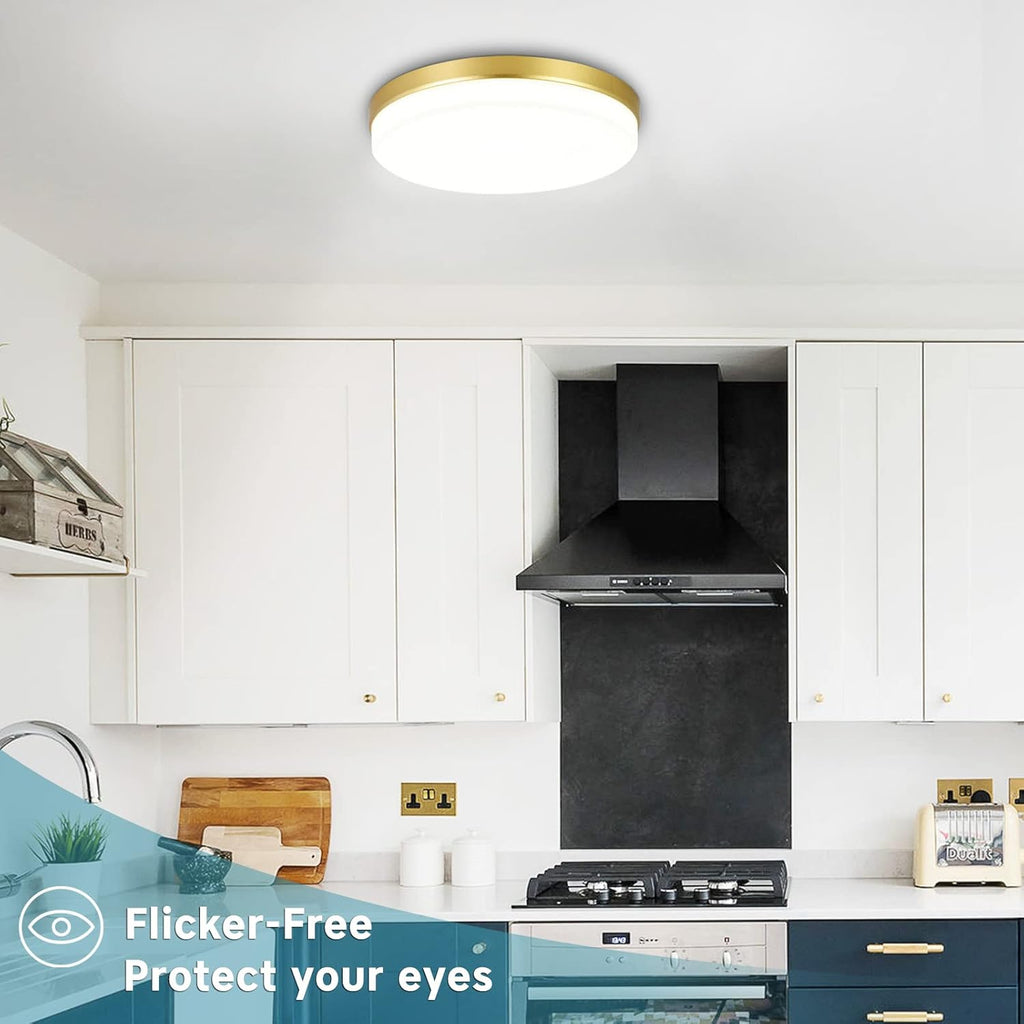 This round LED ceiling lamp is designed to provide uniform, flicker-free illumination that reduces eye strain while enhancing your interior décor. Its gold finish brings a warm, modern touch, making it a stylish upgrade for both contemporary and traditional spaces.
