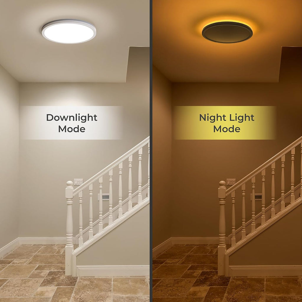 Equipped with a remote control, this ceiling light allows you to adjust brightness and color temperature with ease. Choose from a warm 2000K night light mode for cozy evenings or set the light anywhere between 3000K to 6500K to create the perfect ambiance for reading, relaxing, or working. The dimmable feature ensures complete control over brightness levels, helping to reduce eye strain and create a comfortable atmosphere.