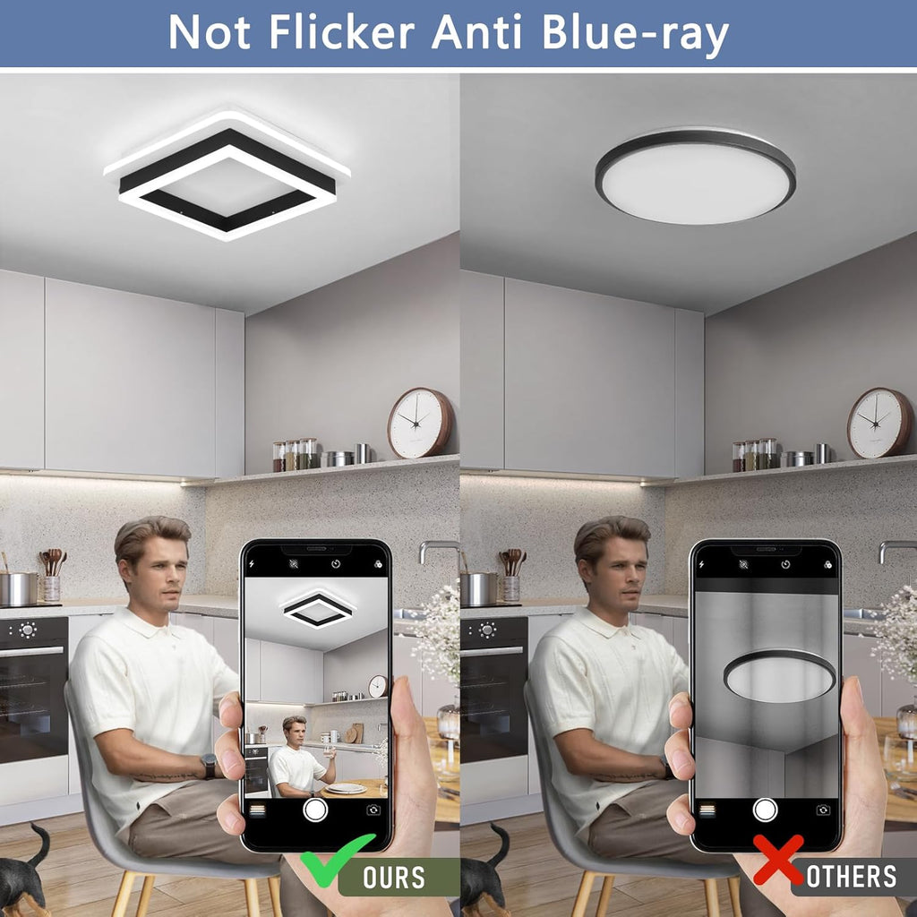Enhance your home with this Square Modern LED Ceiling Light, a sleek and stylish 24W Black Flush Mount Ceiling Lamp designed to bring bright and even illumination to any room. With its slim close-to-ceiling design, this fixture is perfect for both low and standard ceilings, adding a touch of modern elegance to your interior.