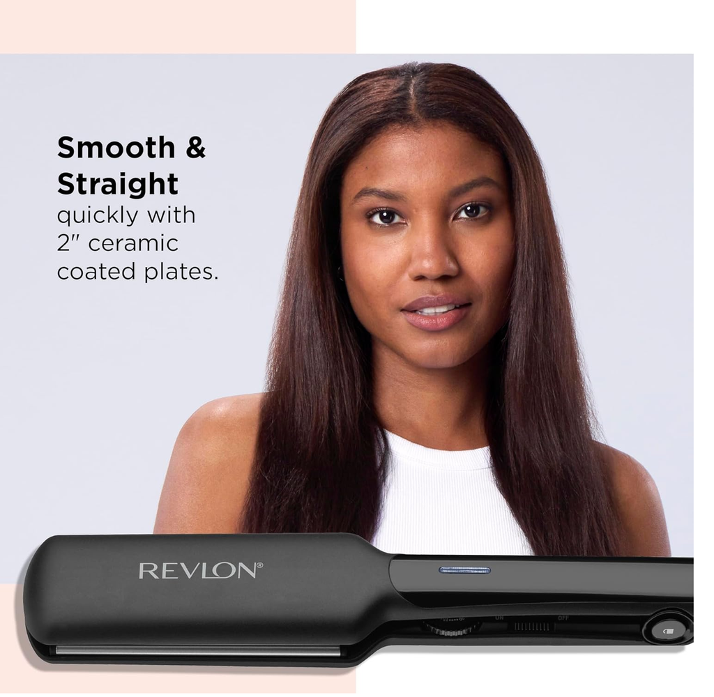 Achieve salon-quality results in minutes with the Ceramic Coated 2” Flat Iron Hair Straightener — designed for quick, smooth, and frizz-free styling. The extra-wide 2-inch ceramic coated plates cover more hair with every pass, making it perfect for thick, long, or coarse hair types.