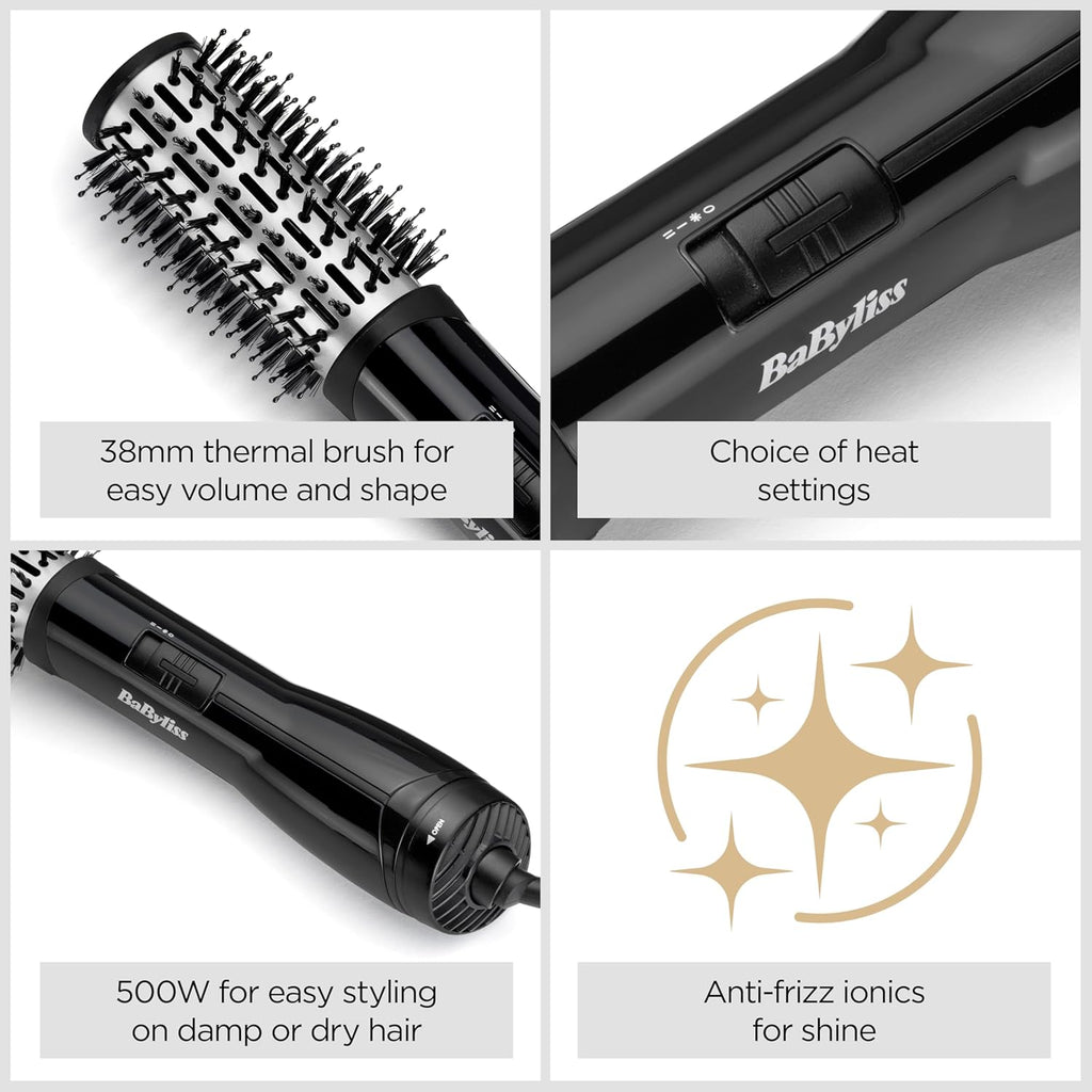 Achieve salon-quality hair with the Flawless Volume Hot Air Brush, designed to dry and style in one simple step. The 38mm titanium-ceramic barrel ensures even heat distribution for smooth, shiny hair while reducing frizz and static. Ionic technology enhances shine and softness, leaving hair silky and manageable. This versatile brush adds natural volume and body to fine, medium, or thick hair, making it perfect for creating polished blowouts, soft waves, or sleek styles. Lightweight and ergonomically designed, it offers comfortable handling for effortless styling at home or on the go. Whether you want quick morning styling or a professional-looking finish, this hot air brush combines efficiency, protection, and style in one powerful tool.