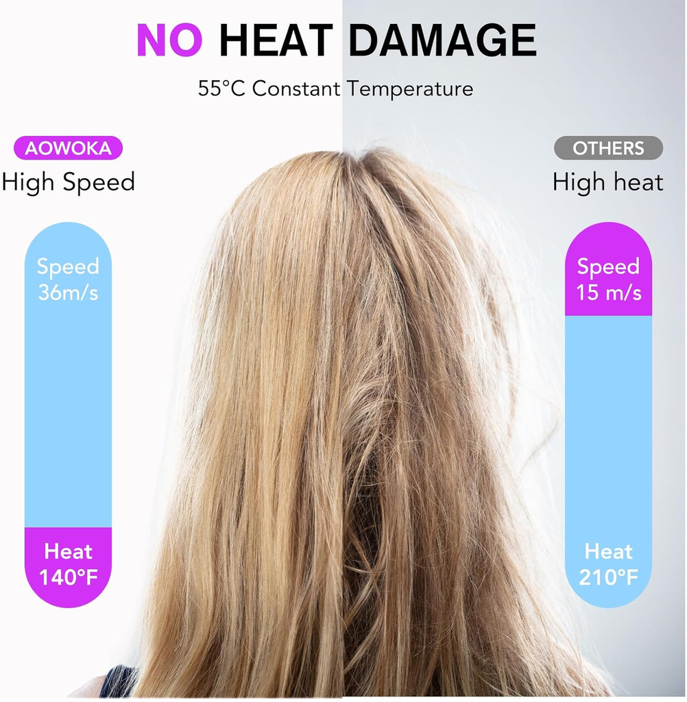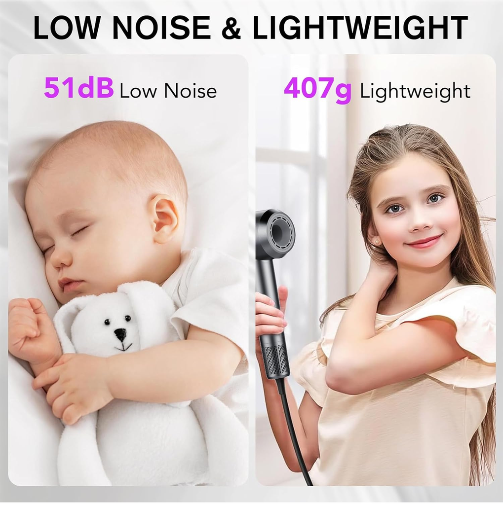 Experience next-level styling with the High-Speed Ionic Hair Dryer, designed for power, precision, and protection. Equipped with a 110,000 RPM high-speed brushless motor, it delivers strong airflow for fast drying while minimizing heat damage. The advanced ionic technology releases millions of negative ions to reduce frizz, enhance shine, and leave your hair smooth and healthy-looking. Choose from 3 speed and 3 heat settings to tailor the drying process to your hair type. The cool-shot button helps lock in styles for lasting hold. Complete with a diffuser for curls and a concentrator nozzle for sleek styles, this lightweight, quiet dryer is perfect for both men and women at home or on the go.