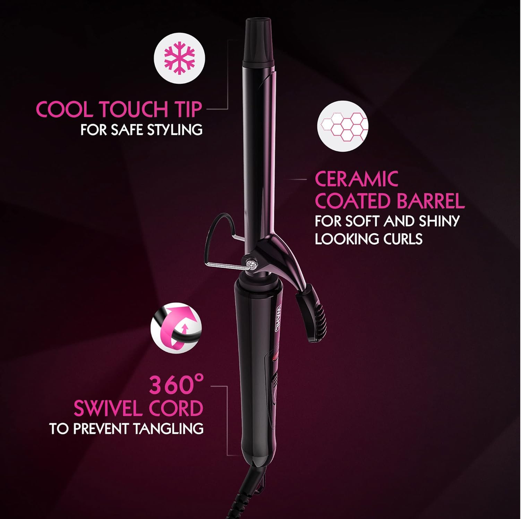Achieve flawless, long-lasting curls effortlessly with this 32mm Ceramic Curling Wand — designed for both salon and at-home styling. The advanced ceramic barrel distributes heat evenly to minimize hair damage while ensuring smooth, shiny, and frizz-free results. Featuring quick heat-up technology, a cool touch tip for safety, and a 360° swivel cord for easy maneuverability, this curling wand is ideal for all hair types. The barrel clamp provides a secure grip for controlled styling, while the corded design ensures consistent power for professional-quality curls every time.