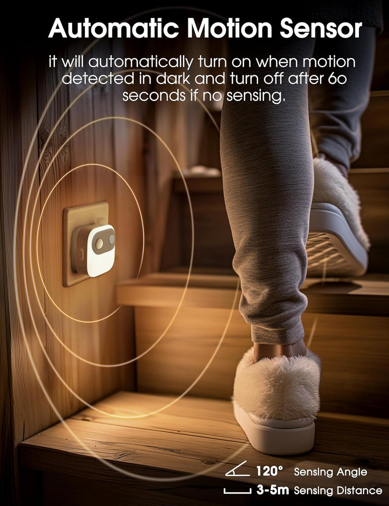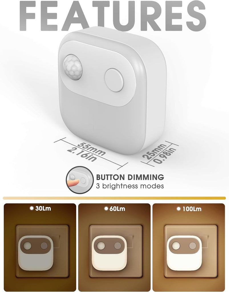 With a 3000K warm white glow, it offers gentle, eye-friendly light that creates a cozy ambiance in hallways, bedrooms, stairs, or children’s rooms. Designed for convenience and energy efficiency, it consumes only 1W of power while lasting up to 50,000 hours.