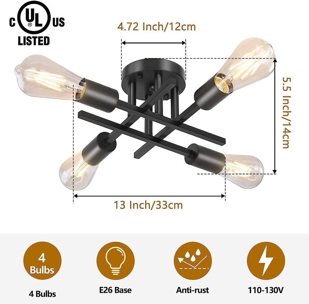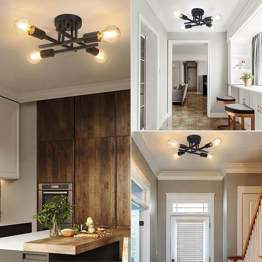 Add timeless charm and warm ambiance to your home with this Vintage 4-Light Semi Flush Mount Ceiling Light. Designed to complement both classic and modern interiors, this black chandelier fixture features a stylish industrial look with an E27 base that fits standard bulbs (not included). The versatile design makes it ideal for kitchens, bedrooms, hallways, and farmhouse settings. Its sturdy metal construction ensures long-lasting durability, while the customizable arm layout allows you to create your preferred lighting pattern. Whether you're enhancing a rustic space or adding character to a modern room, this vintage ceiling light is the perfect functional centerpiece.