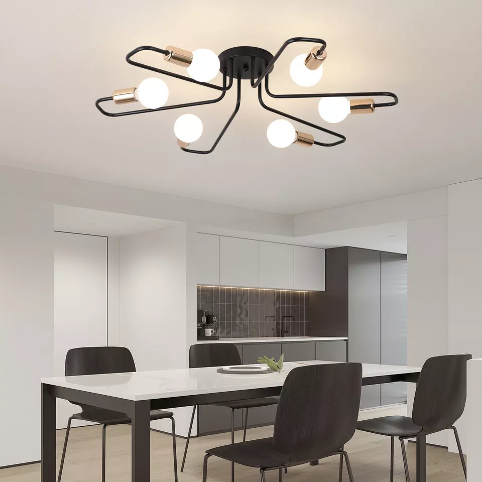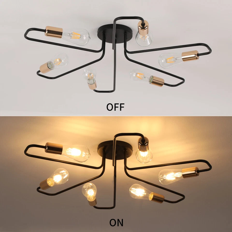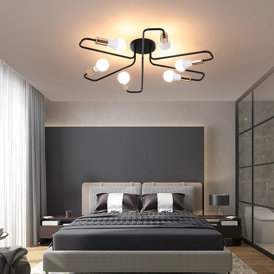 Stylish Industrial Spider Design: A retro spider-arm look adds character and modern industrial flair to any ceiling.