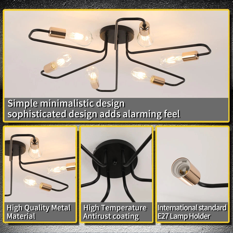 Elevate your interior lighting with the Vintage Industrial Spider Ceiling Light. This semi-flush mount chandelier features a bold spider-arm design and a matte black finish, crafted from high-quality stainless steel. Built to resist rust, fading, and corrosion, it blends effortlessly with any décor style—whether modern, rustic, or industrial—making it the perfect lighting statement for your home or commercial space.