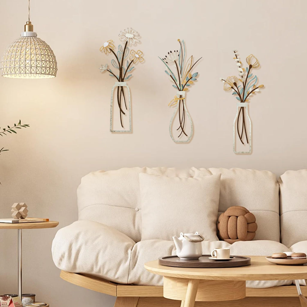 Add timeless elegance and rustic charm to your home with this 3 Pcs Metal Flower Wall Art Set. Each piece features a unique minimalist floral design with smooth metal line detailing, bringing a modern yet bohemian touch to your walls.