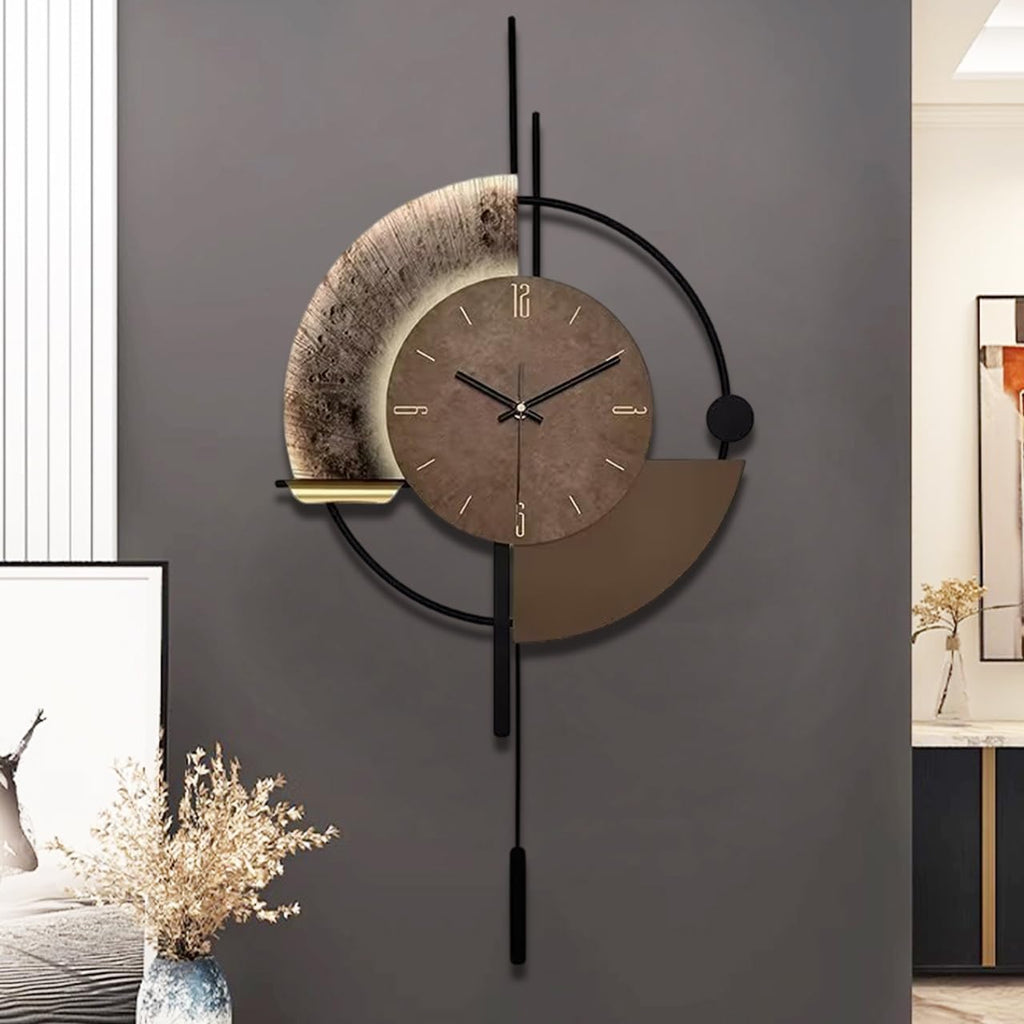 Add timeless elegance to your space with this Decorative Wall Clock with Pendulum, a perfect blend of modern artistry and classic charm. Crafted from premium iron and wood, this large wall clock features a three-dimensional, double-layer design that adds depth and sophistication to any room.