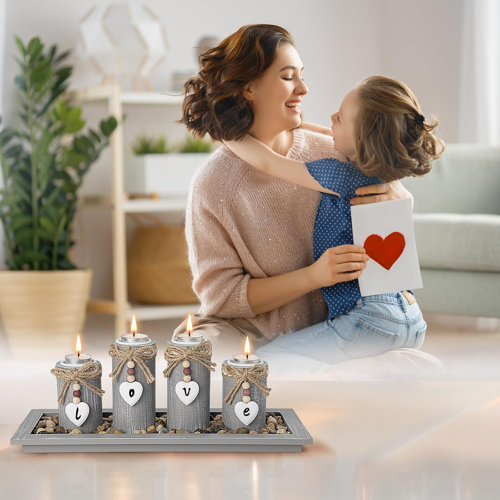 Complete Décor Set: Includes 4 stylish candle holders with matching wooden tray.