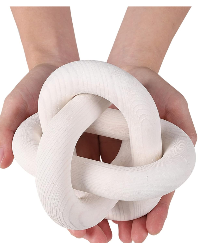 Add a touch of rustic charm to your home with the Hand-Carved 3-Link Wooden Chain Decor. Crafted from natural solid wood, each link is carefully shaped and polished by artisans, making every piece unique with its own wood grain and character. This decorative chain knot ornament is perfect for styling on trays, coffee tables, shelves, or bookcases, adding warmth and texture to farmhouse, boho, or modern rustic interiors. Its versatile design makes it a timeless accent piece that enhances any living room, bedroom, or office space while showcasing the beauty of handcrafted wood art.