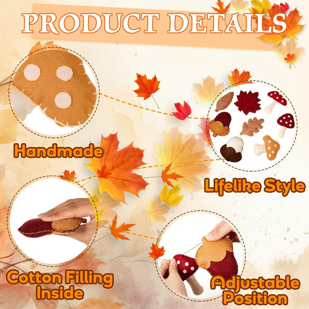 Charming Autumn Design: Includes mushrooms, acorns, and leaves in rich seasonal hues.