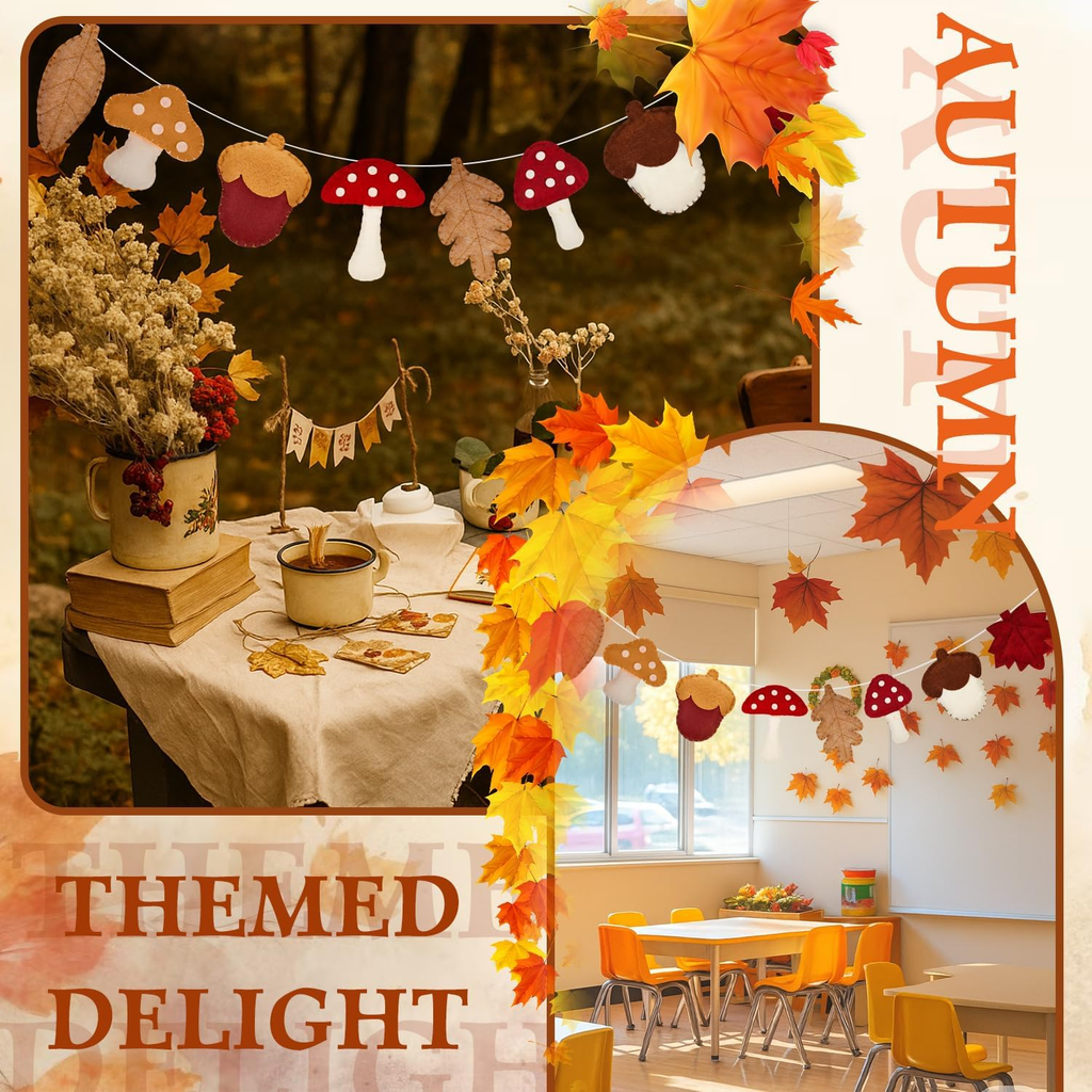 Design: Autumn-themed banner with leaves, acorns, and mushrooms