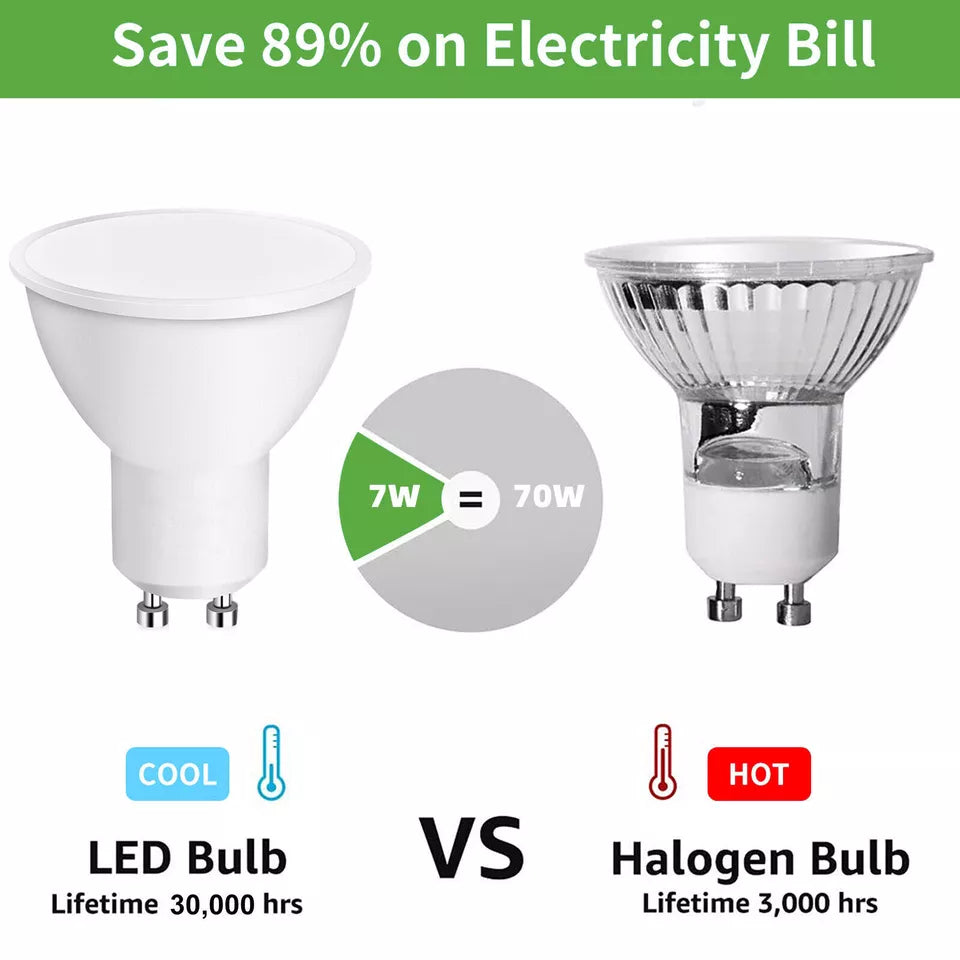 【Energy Saving】Compared with the 50W halogen bulb, the GU10 light bulbs can save up to 90% of the electricity bill. The service life is up to 30,000 hours, which will reduce costs by reducing the frequency of replacement.