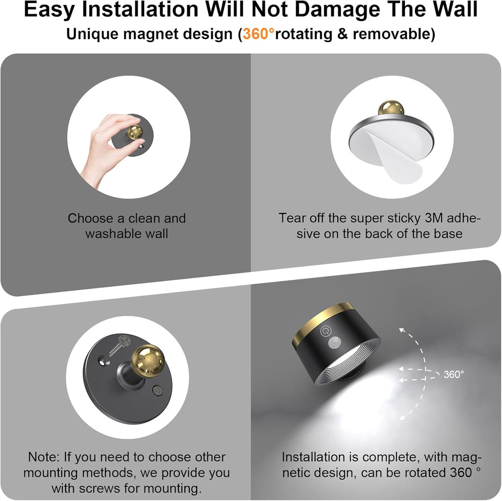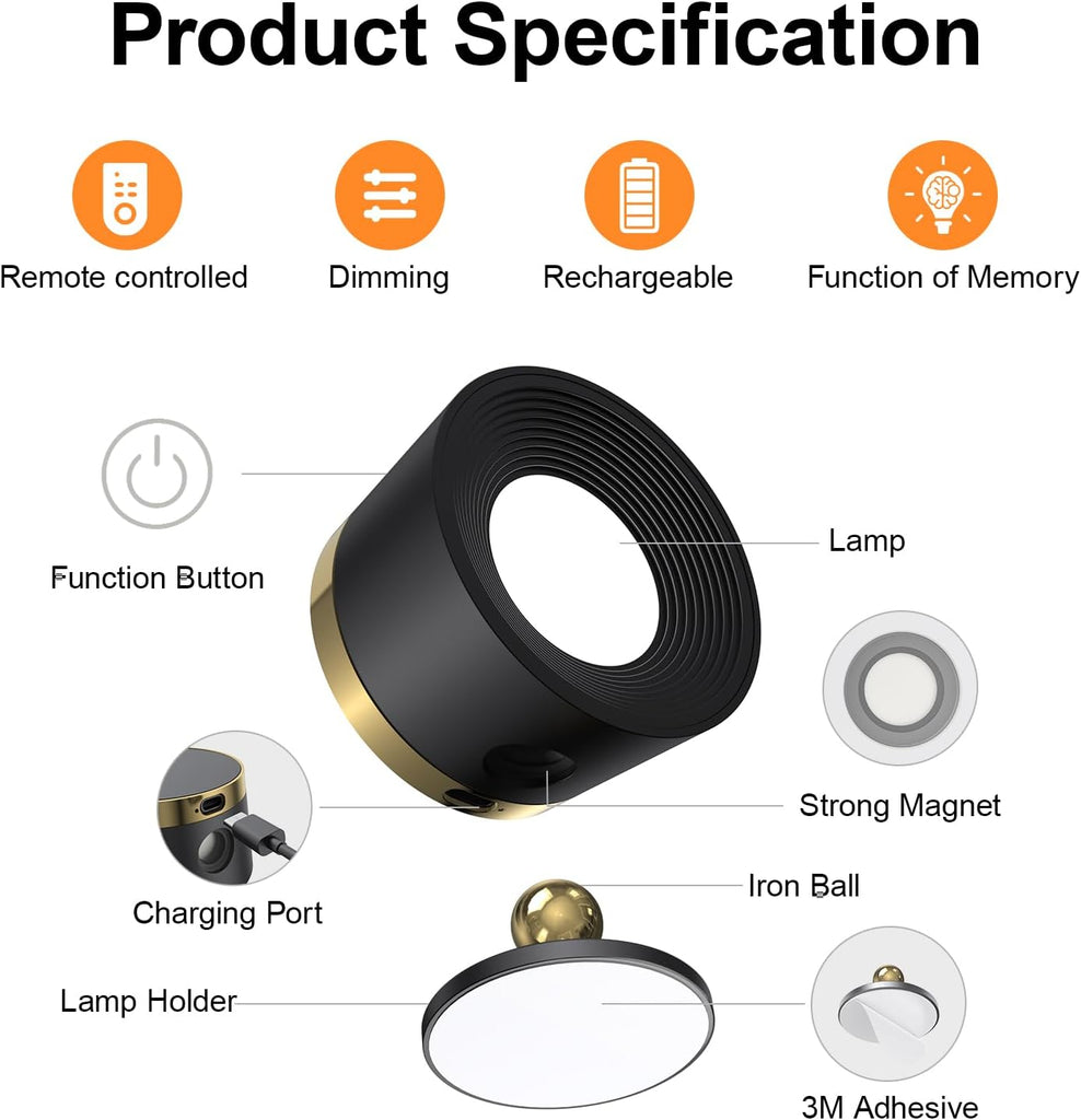 • 2 × Magnetic Battery Operated Wall Lights (Dimmable LED)