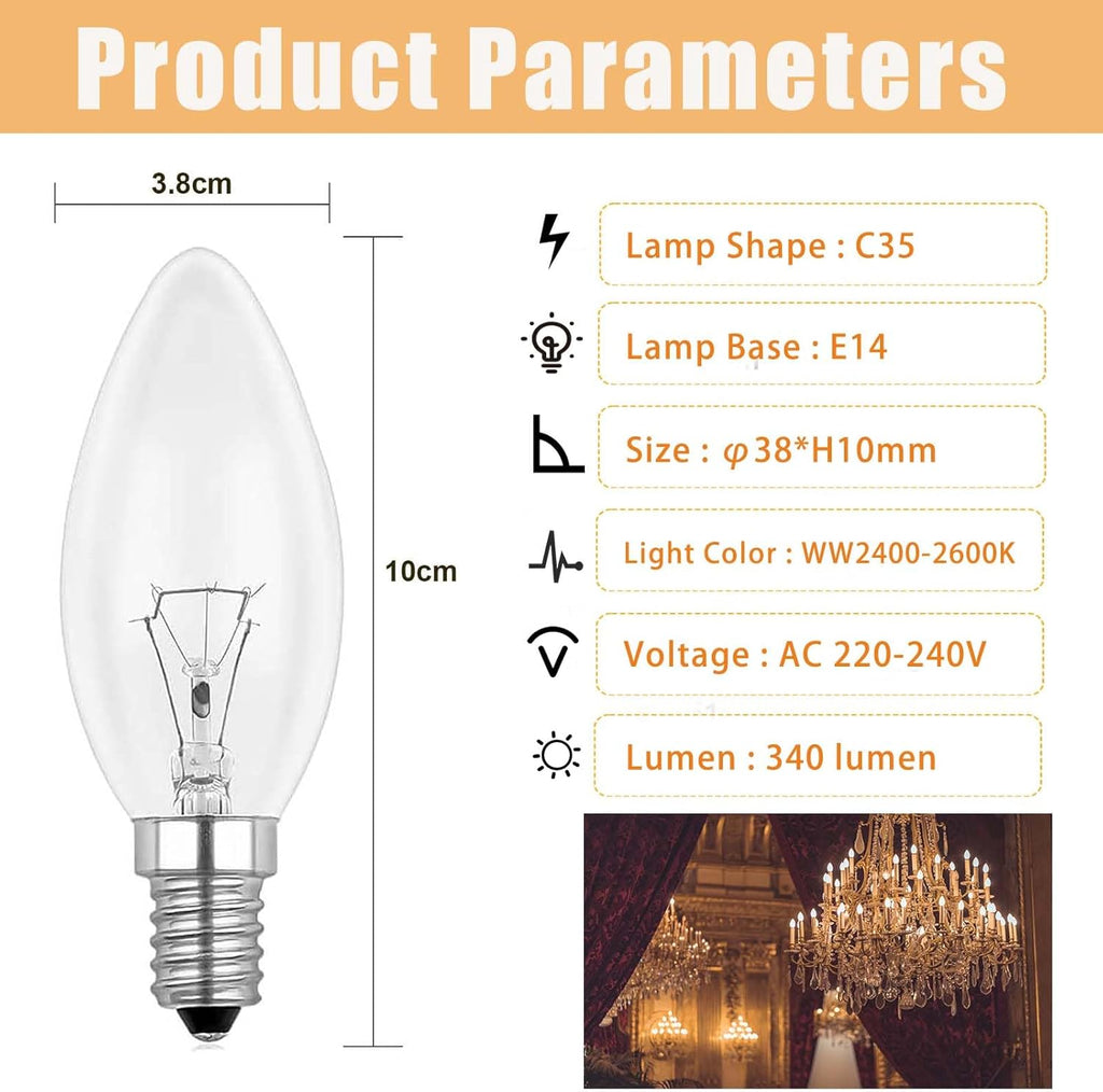 Enjoy the perfect blend of functionality, aesthetics, and reliability with these C35 E14 Halogen Candle Bulbs, ideal for creating a warm and inviting atmosphere in your home or commercial spaces.
