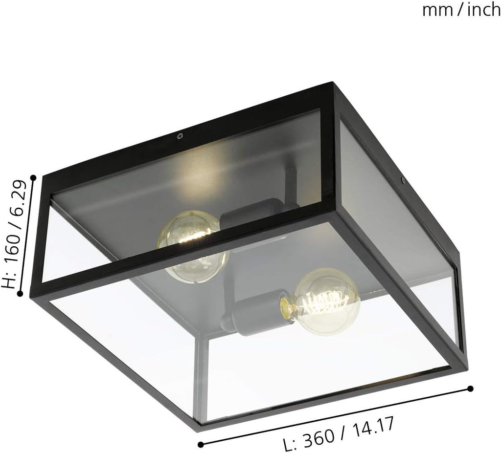 Add an industrial edge to your interior with the Eglo Charterhouse 49392 Ceiling Light. Crafted from durable black steel with a bold caged design, this stylish ceiling fixture features a visible lumen-style bulb holder that enhances its raw, minimalist appeal. Perfect for modern, urban, or vintage-inspired spaces, the Charterhouse ceiling light is compatible with E27 bulbs up to 60W, making it both practical and visually striking. Whether installed in a hallway, dining area, or loft-style living room, this fixture adds character and charm. Elevate your décor with this industrial ceiling light that blends form, function, and style seamlessly.