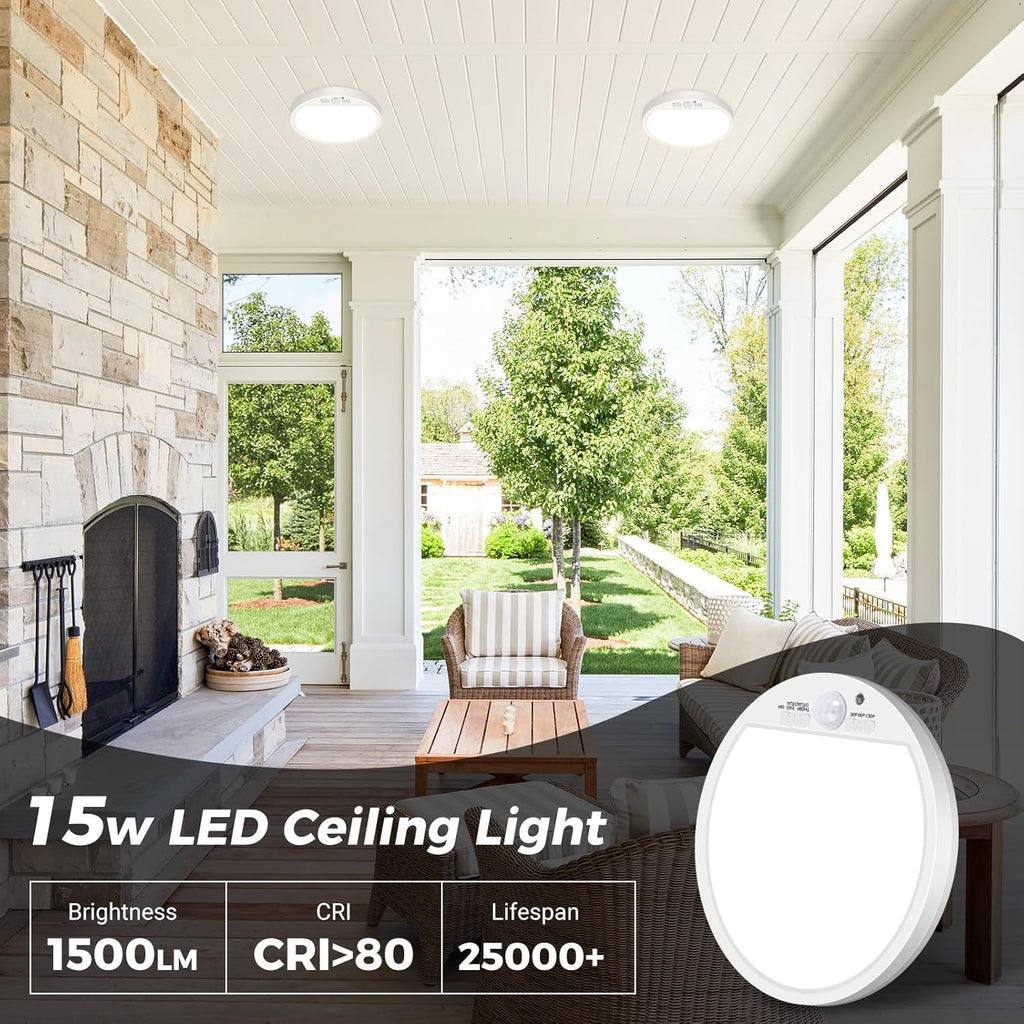 Upgrade your home lighting with this 15W LED Ceiling Light featuring an advanced PIR motion sensor and selectable color temperatures (3000K, 4000K, 6500K). Ideal for bathrooms, garages, hallways, and stairwells, this energy-efficient light offers easy installation, smart automation, and versatile ambiance control—all in a sleek, compact design.