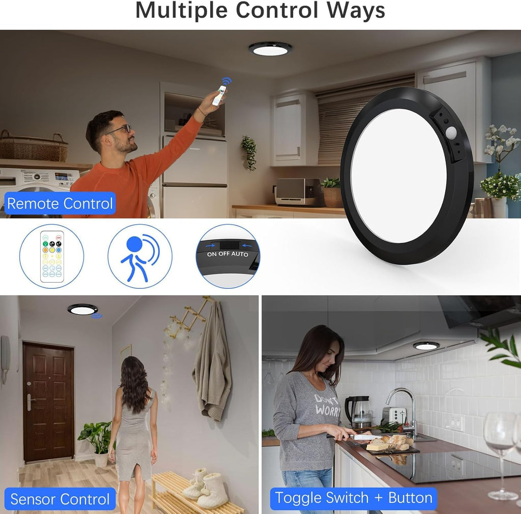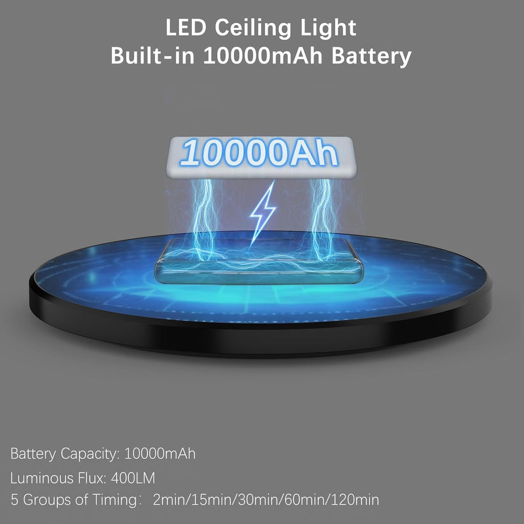 Illuminate dark areas effortlessly with this 10000mAh Rechargeable LED Motion Sensor Ceiling Light. Featuring 3 adjustable color temperatures, motion sensing, and remote control functionality, this wireless ceiling light delivers up to 400 lumens of glare-free brightness. Whether for your bathroom, closet, hallway, or porch, it’s the perfect power-free lighting solution.