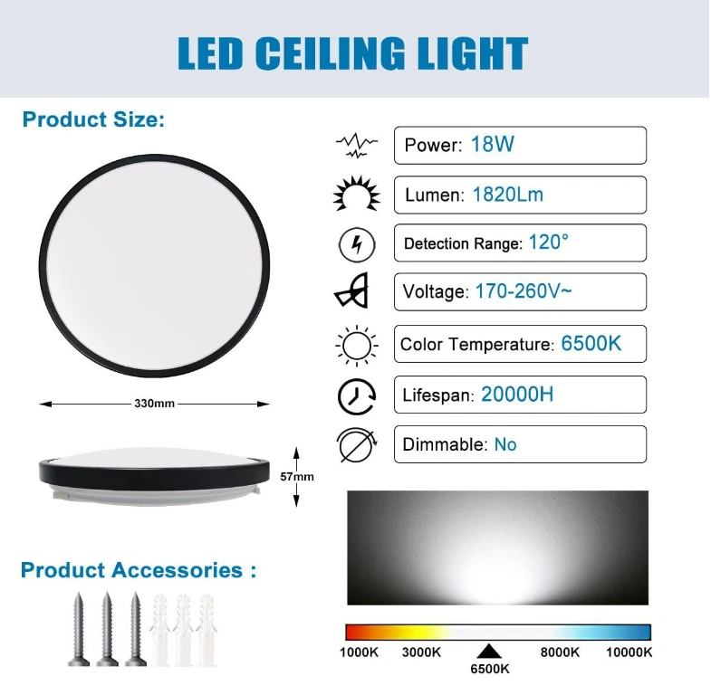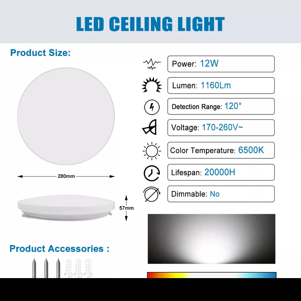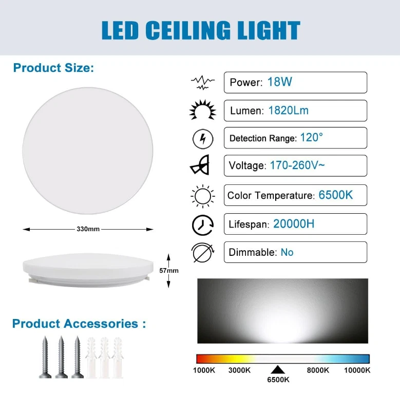 Bring clarity and modern elegance to your home with this LED Ceiling Light Panel, designed for efficiency and style. With a cool white 6500K color temperature and antique chrome finish, it delivers bright downlight ideal for kitchens, bathrooms, and bedrooms. Available in 12W or 18W, this energy-saving light is IP54 waterproof rated, making it suitable even for wet rooms. A simple wall switch control makes it easy to operate, and its low-profile round design fits seamlessly into any contemporary interior.