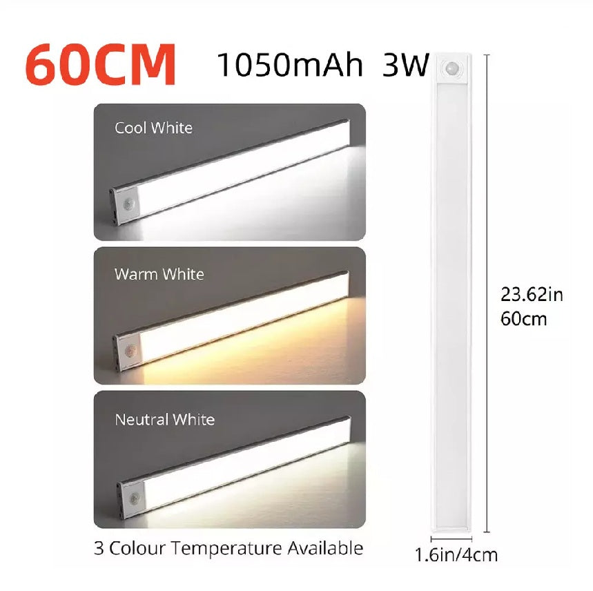 The PIR Motion Sensor Strip Light is a versatile, energy-efficient solution for illuminating cabinets, closets, or any indoor space. Available in multiple lengths (40cm, 60cm, and 80cm), these LED strip lights offer a bright, focused light with a motion sensor that activates the strip as soon as you walk by. With an energy-saving design and up to 5,000-9,999 hours of lifespan, these lights are perfect for areas where hands-free lighting is needed.