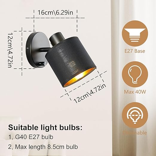 Versatile Use: Perfect for bedside lighting, hallway ambiance, or as a reading sconce.