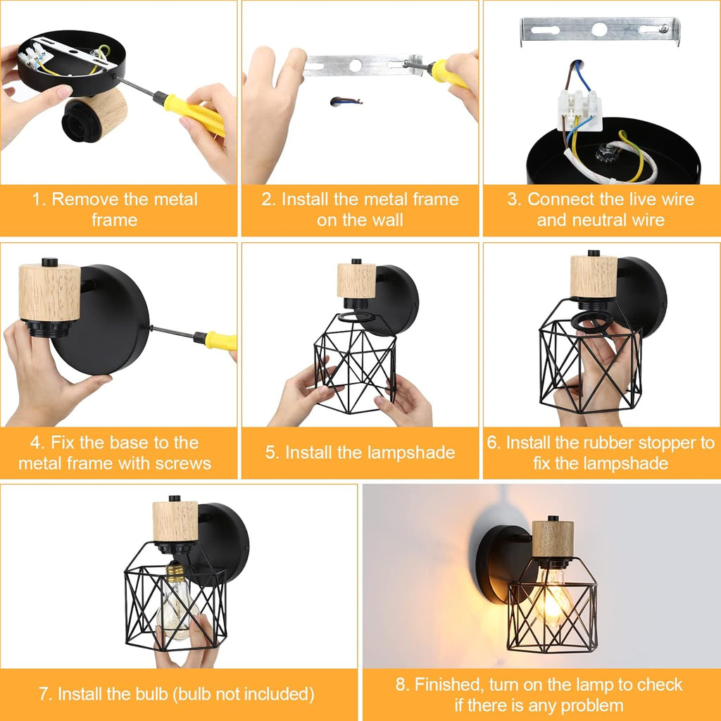 Enhance your home with the Lightess Industrial Wooden Wall Lamp, a perfect blend of rustic charm and modern functionality. Featuring a sturdy wooden base and a stylish metal cage design, this retro wall sconce adds a touch of industrial elegance to any indoor space. Its swiveling adjustable downlight allows you to direct light where it’s needed, making it ideal for living rooms, bedrooms, kitchens, or hallways. Compatible with standard E27 bulbs (not included), this lamp is versatile and easy to integrate into your existing decor. Whether used as ambient, task, or accent lighting, it combines durability, style, and practicality in one attractive package.