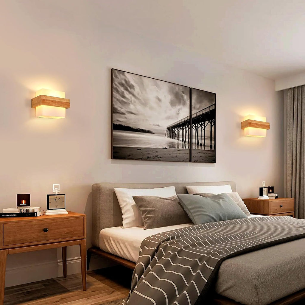 Bring a warm and stylish touch to your home with this Modern LED Wall Light Indoor, designed to blend natural wood, elegant glass, and modern creativity in one stunning fixture. The Creative Square Wooden Wall Lamp features a premium glass shade that diffuses light beautifully, creating a soft and cozy ambiance in any room.