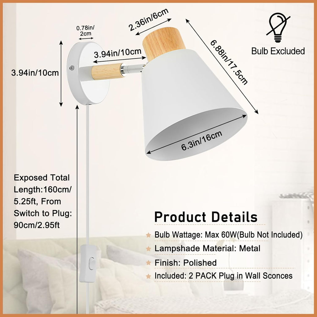 Bring modern elegance and functionality to your interiors with this set of two plug-in wall lights. Featuring a 350° rotatable and 180° tiltable lampshade, these sconces let you direct light exactly where it’s needed—ideal for bedside reading, creating cosy ambience, or highlighting artwork.