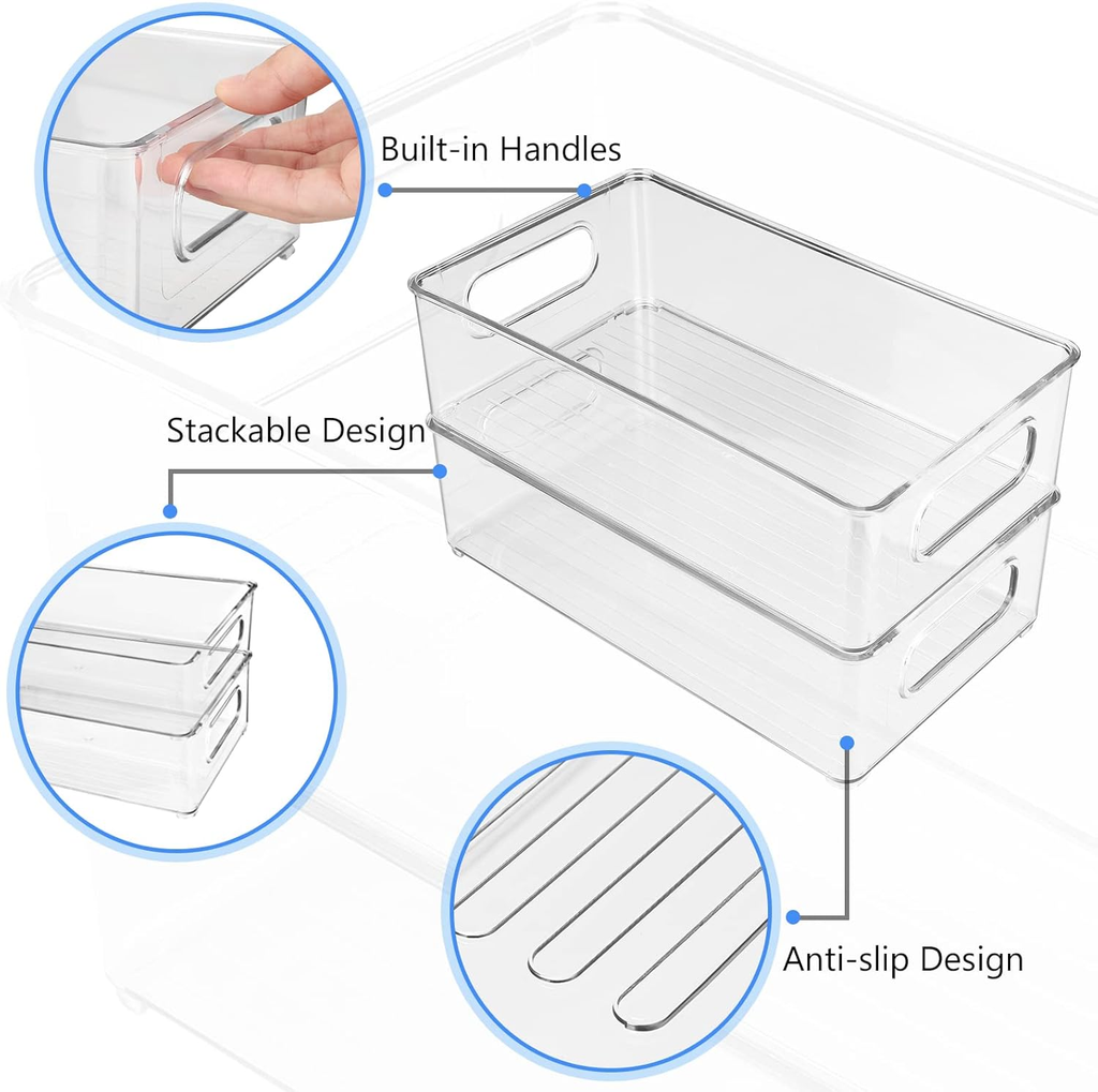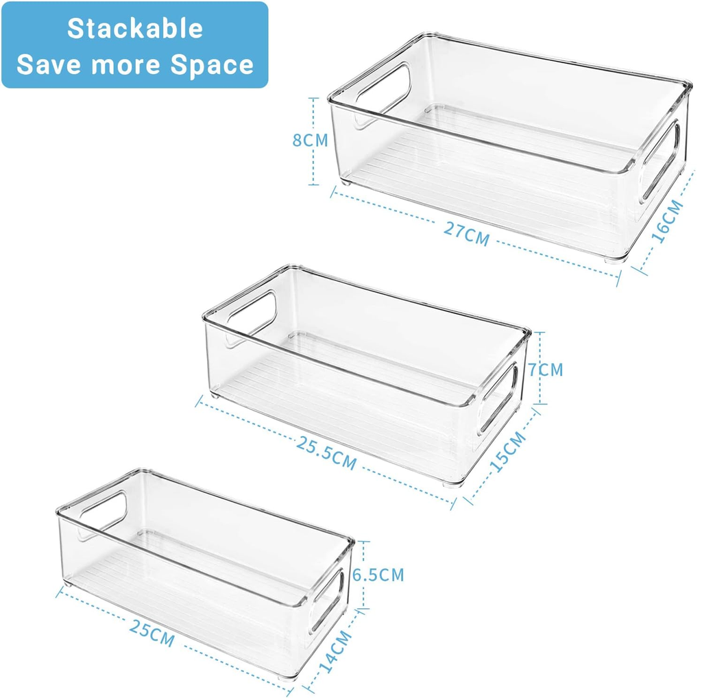 The clear design allows for quick visibility, helping you find what you need without rummaging through shelves. With their stackable structure, these boxes save valuable fridge or cabinet space while maintaining order and accessibility. Perfect for use in the refrigerator, kitchen cupboards, pantry, bathroom, or office, they offer versatile organisation throughout your home.