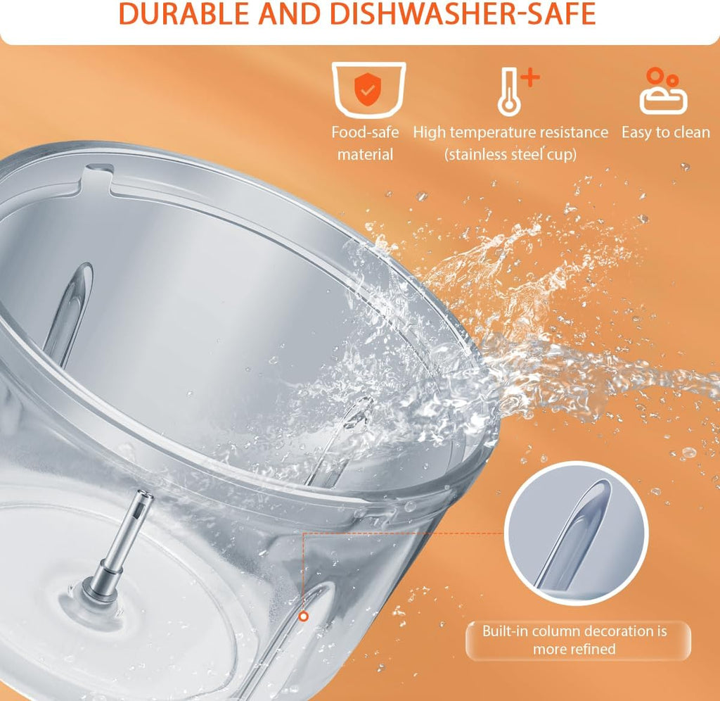 Dual Containers: 2L glass bowl for visibility & hygiene + 1.8L stainless steel bowl for durability.