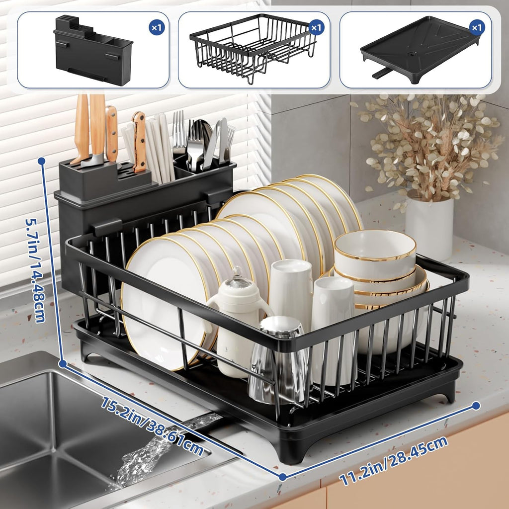 Crafted with durability and style in mind, this dish rack combines a sturdy frame with a modern black finish that complements any kitchen décor. Its space-saving design ensures maximum functionality without taking up unnecessary counter space. Easy to assemble, use, and clean, this dish rack is the perfect companion for everyday dish drying.