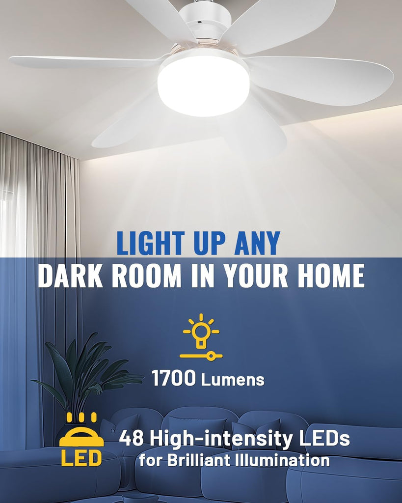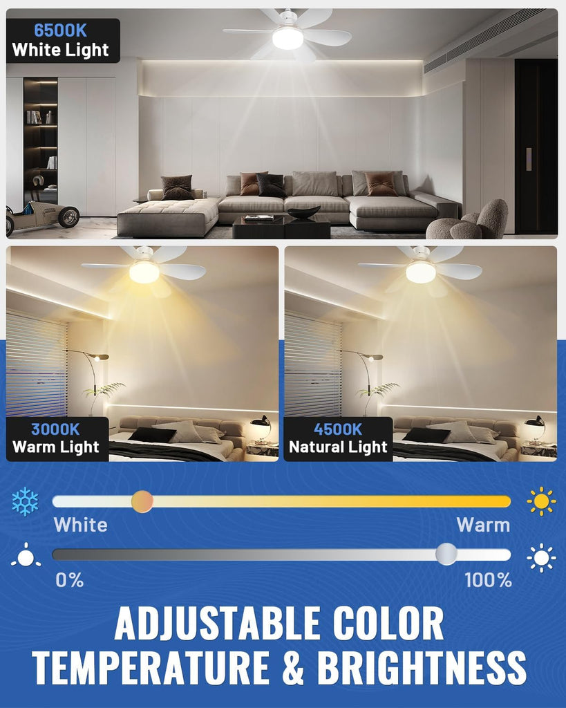 Featuring 48 high-quality LEDs, this fan light delivers up to 1700 lumens of brightness with infinite dimming (0–100%) and 3 adjustable color temperatures (3000K warm to 6500K cool white) to suit every mood and occasion.