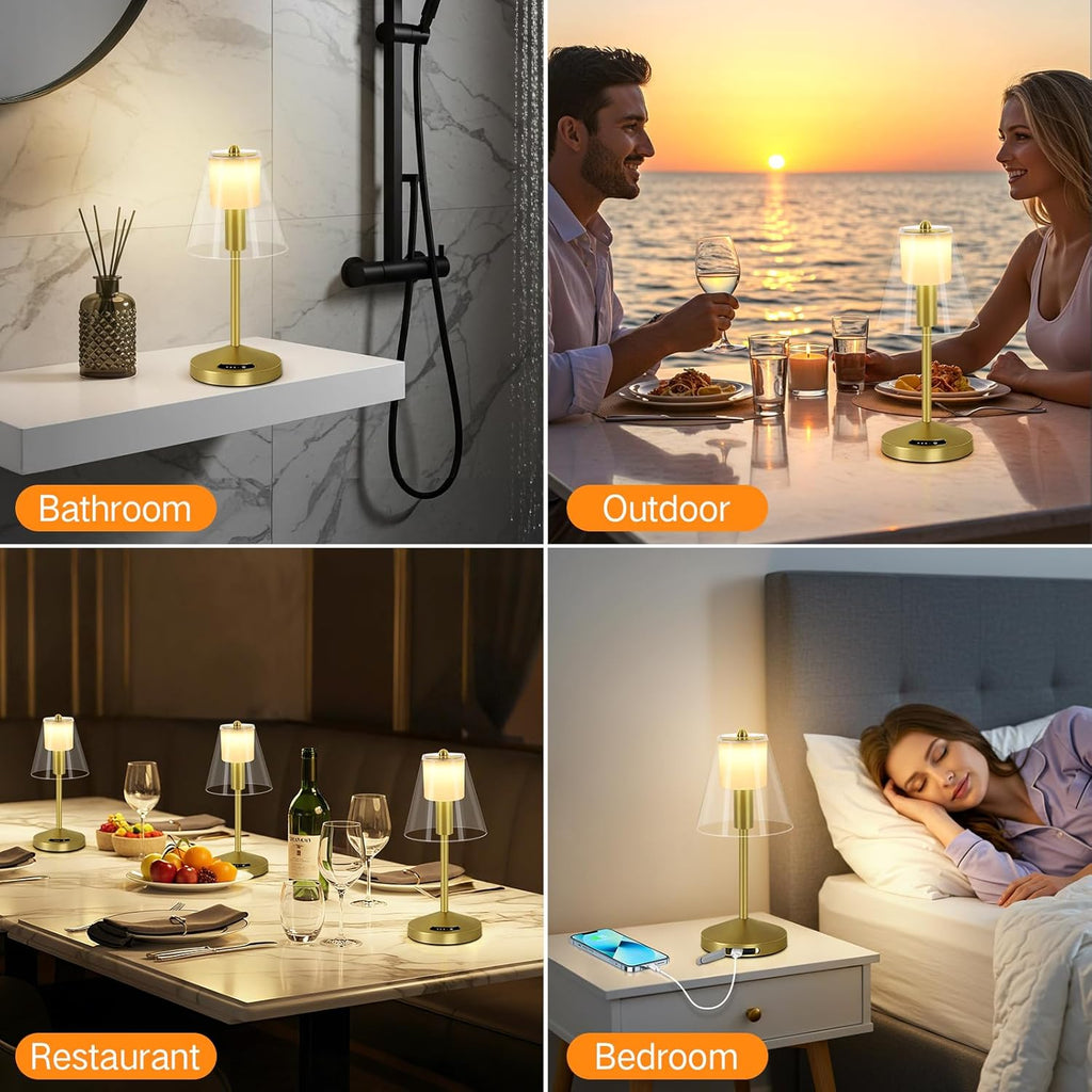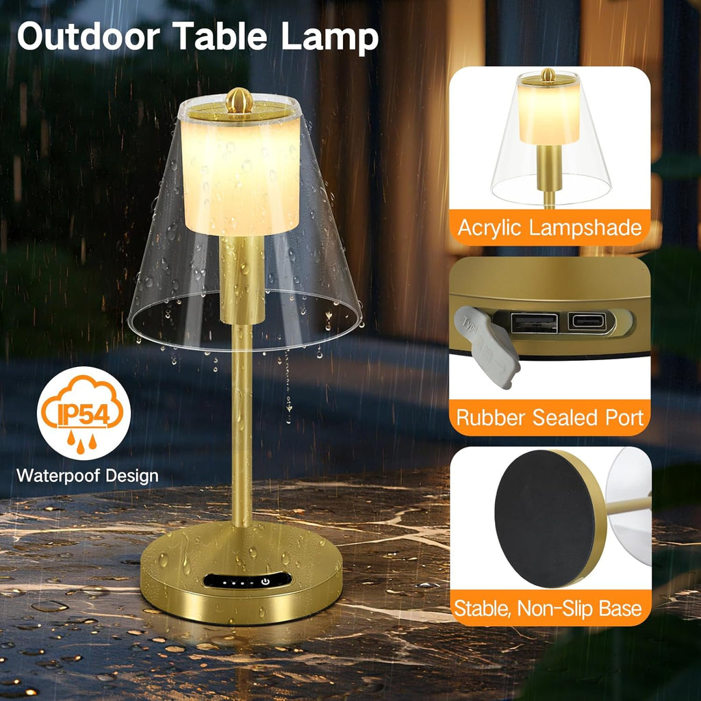 Built with a waterproof and corrosion-resistant aluminum alloy body, this lamp is ideal for use in bathrooms, kitchens, patios, poolside areas, or outdoor dining. Its cordless and portable design makes it perfect for both home and travel lighting — elegant, practical, and made to last.