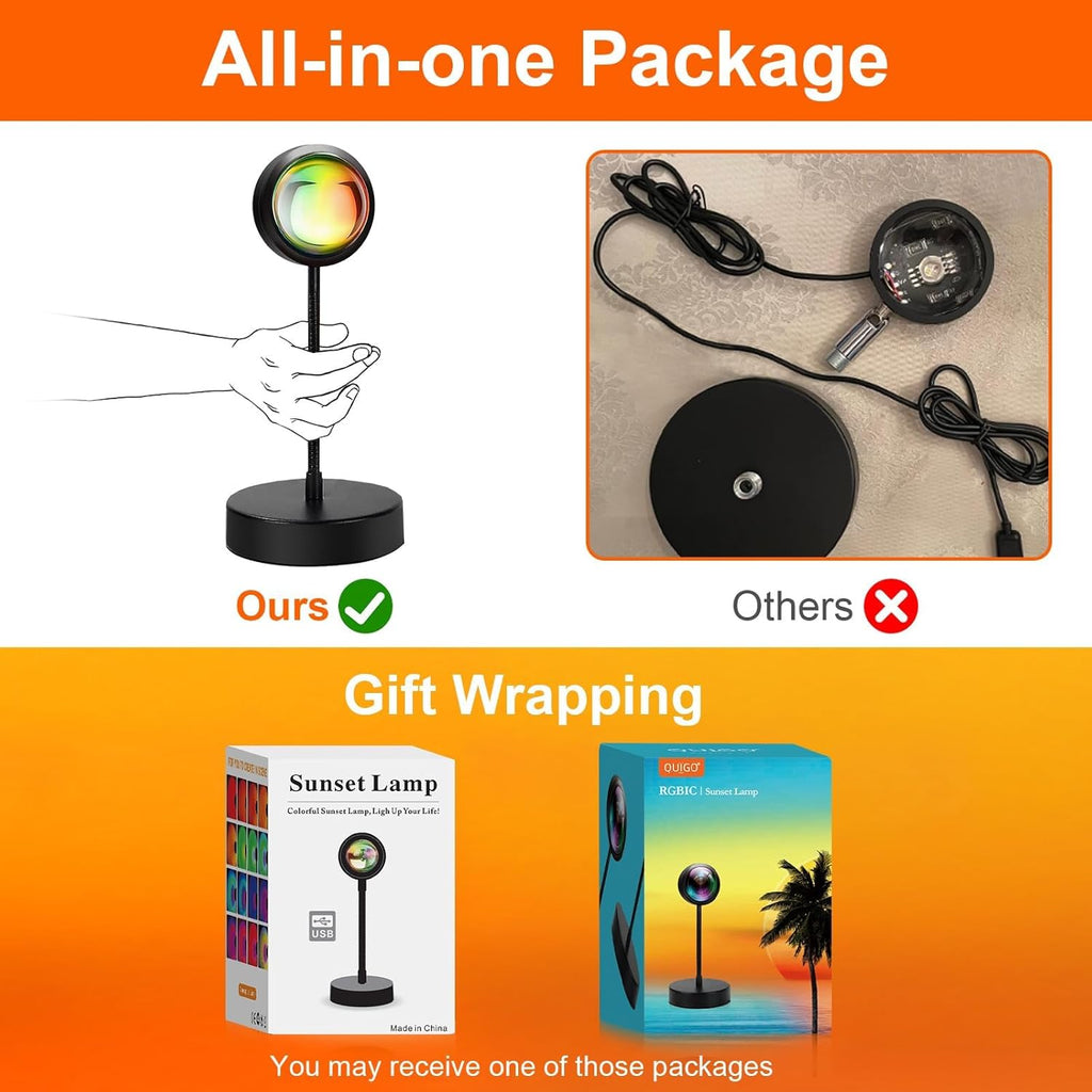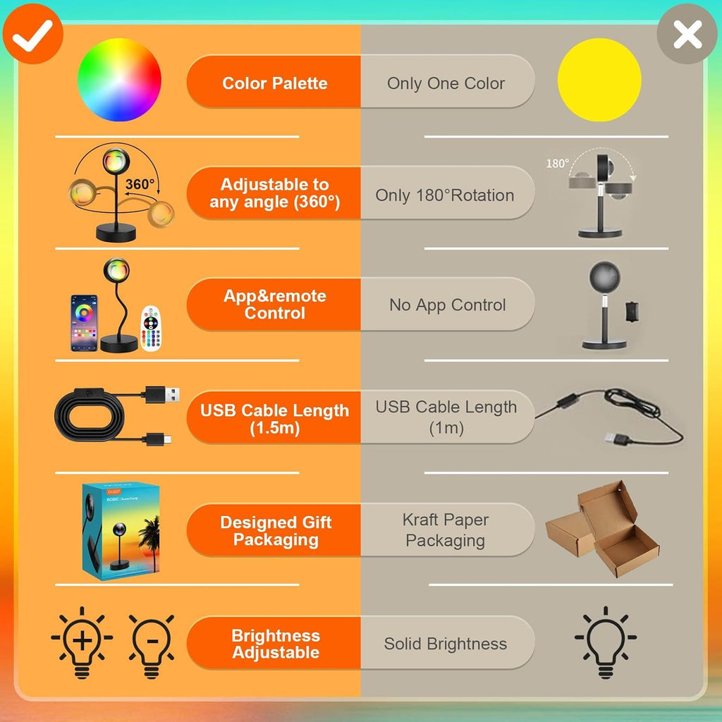 Transform your space with this Sunset Projection LED Lamp – a stunning room décor piece designed to replicate the beauty of sunrise and sunset indoors. Featuring 16 vibrant colors, 4 dynamic lighting modes, and a flexible adjustable head, this mood lamp is perfect for enhancing ambiance, creating content, or setting a cozy atmosphere. With app-controlled timer functionality and USB power, it’s ideal for bedrooms, dorms, studios, and gift giving.