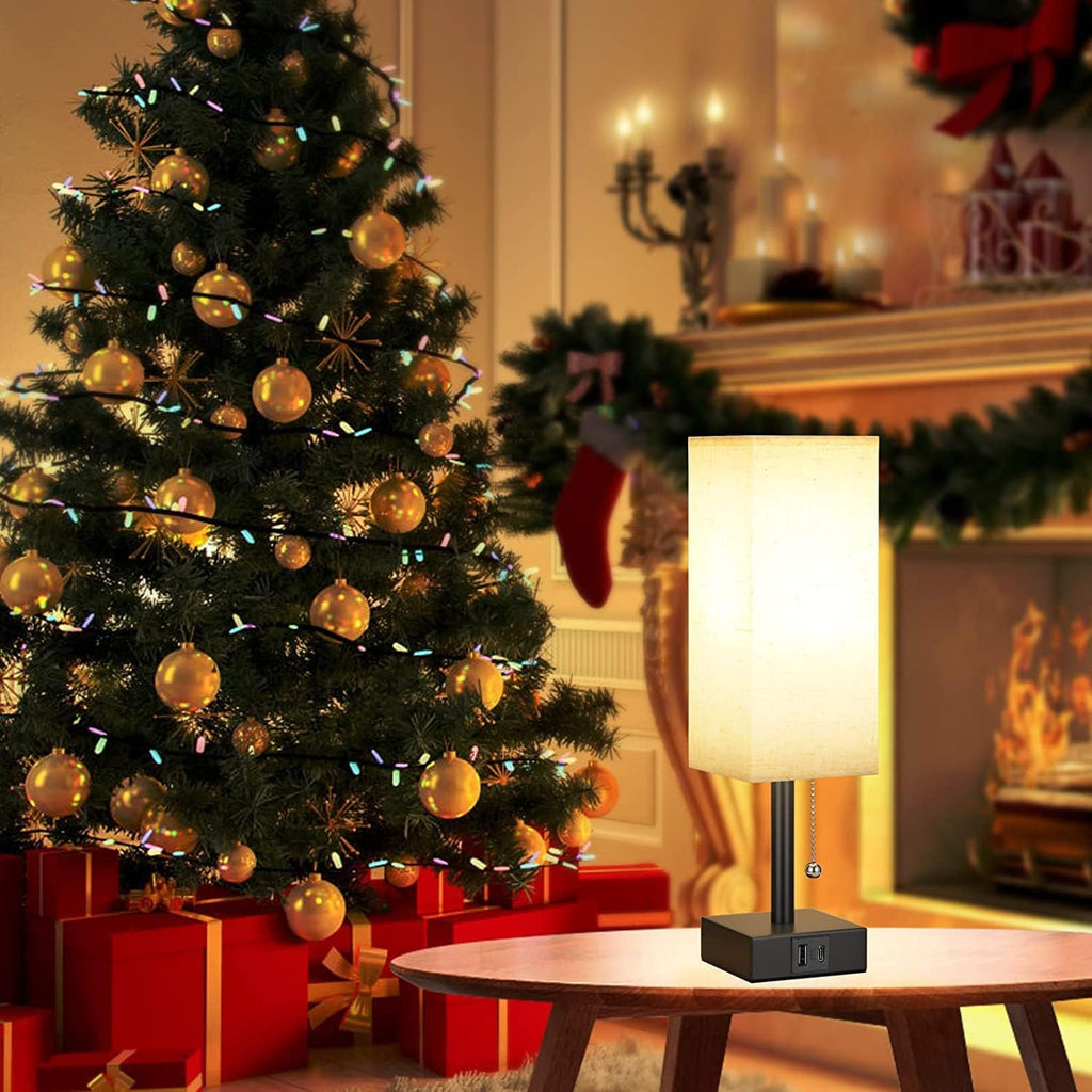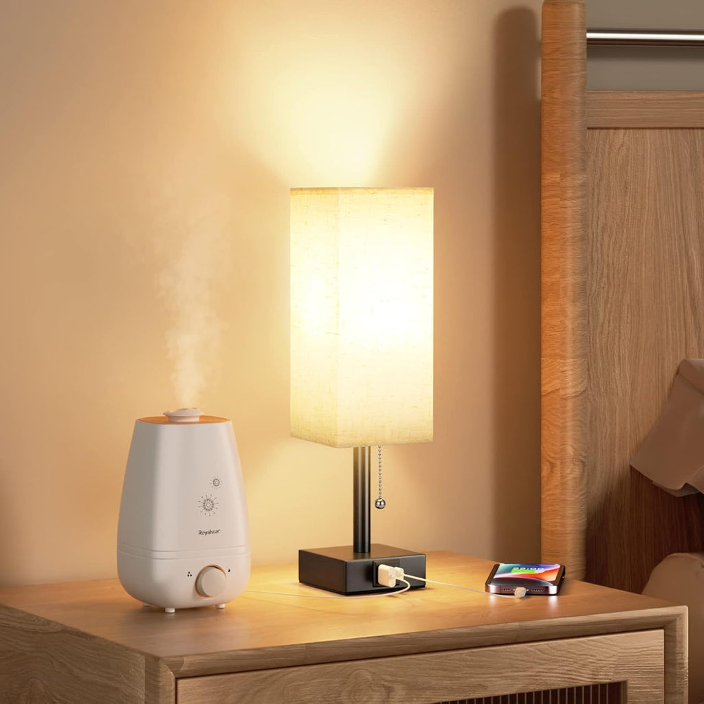 USB Bedside Table Lamp with 3 Color Modes & Pull Chain
